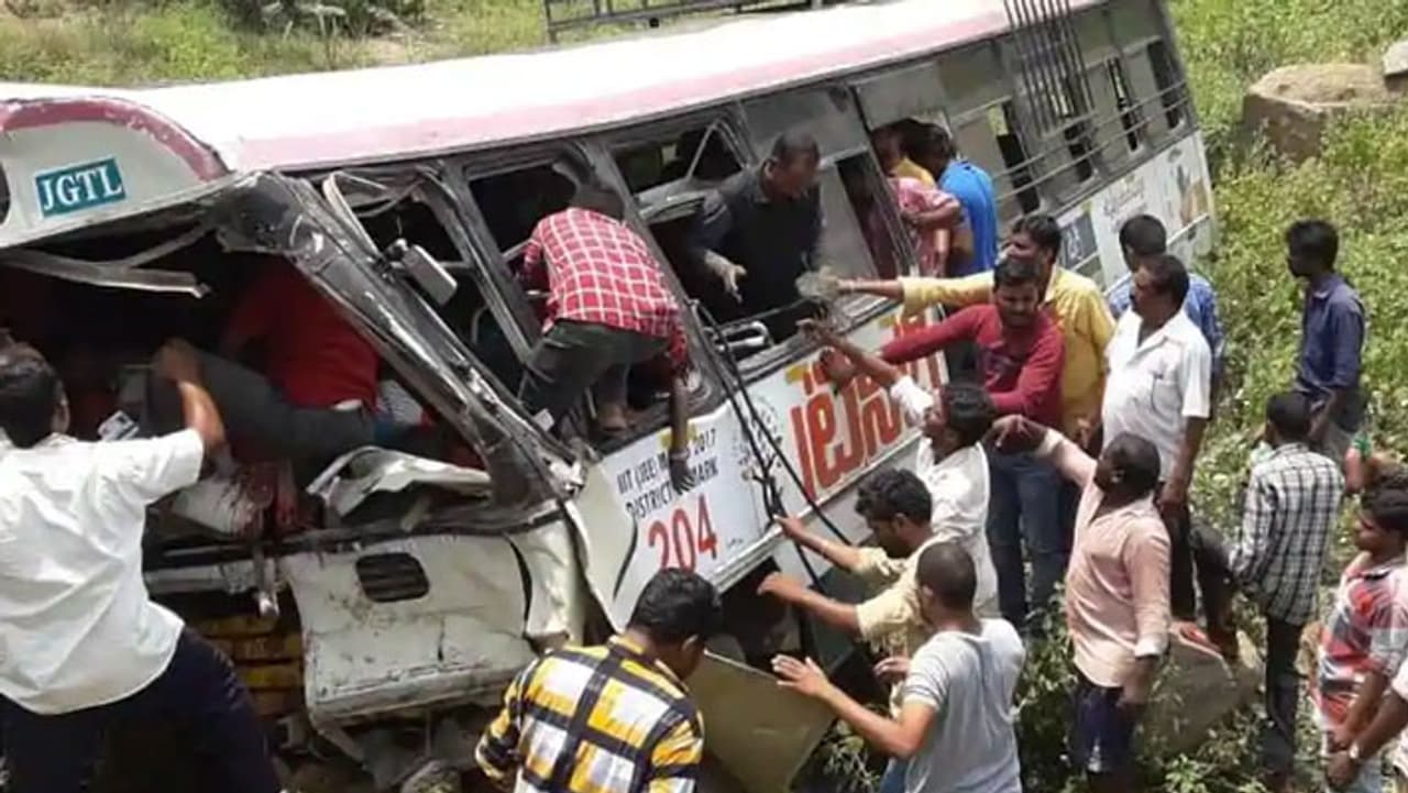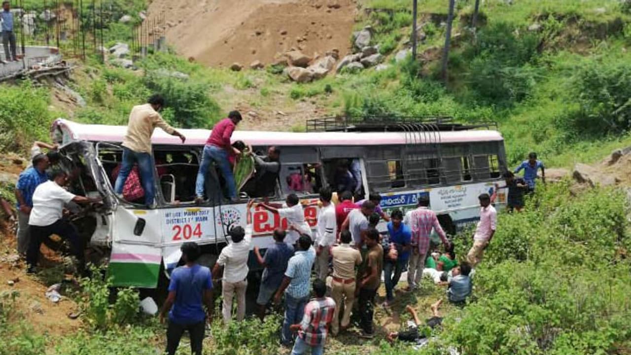 പരിക്കേറ്റവരെ രക്ഷപ്പെടുത്താനുള്ള ശ്രമങ്ങള് പുരോഗമിക്കുകയാണ്. പലരുടെയും നില ഗുരുതരമായതിനാല് മരണസംഖ്യ ഇനിയും ഉയര്ന്നേക്കുമെന്ന ആശങ്കയുണ്ട്. ചൊവ്വാഴ്ച ഉച്ചയ്ക്ക് പന്ത്രണ്ട് മണിയോടെയാണ് അപകടം ഉണ്ടായത്. ബസിന്റെ ബ്രേക്ക് പൊട്ടിയതാണ് അപകടകാരണമെന്നാണ് പ്രാഥമിക വിവരം. നിയന്ത്രണം വിട്ട ബസ് കൊക്കയിലേക്ക് മറിയുകയായിരുന്നു. ദുരന്തത്തില് തെലങ്കാന മുഖ്യമന്ത്രി ചന്ദ്രശേഖര റാവു അടക്കമുള്ളവര് ദു:ഖം രേഖപ്പെടുത്തി.
