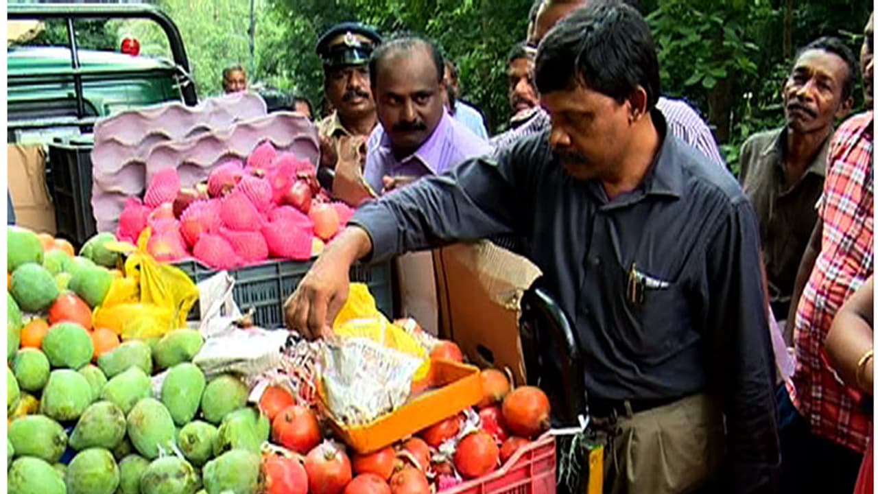 തുടർന്ന് ഭക്ഷ്യസുരക്ഷാ ഉദ്യോഗസ്ഥരെത്തി സാന്പിളുകൾ ശേഖരിച്ചു. വിൽപ്പനക്ക് വെച്ചിരുന്ന മാന്പഴവും തണ്ണിമത്തനും ഓറഞ്ചുമുൾപ്പെടെയുള്ള 150 കിലോയോളം പഴവർഗ്ഗങ്ങൾ നശിപ്പിക്കുകയും ചെയ്തു. അർബുദത്തിന് വരെ കാരണമാകുന്നതാണ്