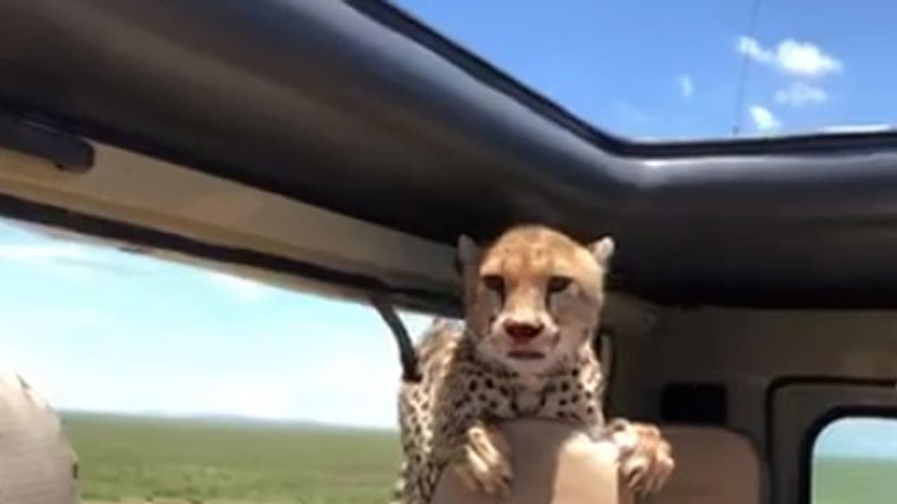 ആഫ്രിക്കന് സഫാരിയില് വാഹനത്തിനുള്ളില് കയറിയ പുള്ളിപ്പുലി, ശ്വസമടക്കിപ്പിടിച്ച് സഞ്ചാരികള്. സെരങ്കട്ടിയിലെ വനപ്രദേശത്ത് കൂടി സഫാരി നടത്തവേയാണ് ബ്രിട്ടണ് ഹായസ് എന്ന ഒരു അമേരിക്കന് സഞ്ചാരിയും സംഘവും ചീറ്റപ്പുലിയുടെ സാന്നിധ്യത്തില്പ്പെട്ടത്. മൂന്ന് ചീറ്റപ്പുലികളാണ് ഇവരുടെ വാഹനത്തിന് അടുത്ത് എത്തിയത്. പെട്ടെന്ന് അതില് ഒരു പുലി വാഹനത്തിന് അകത്ത് കയറി.