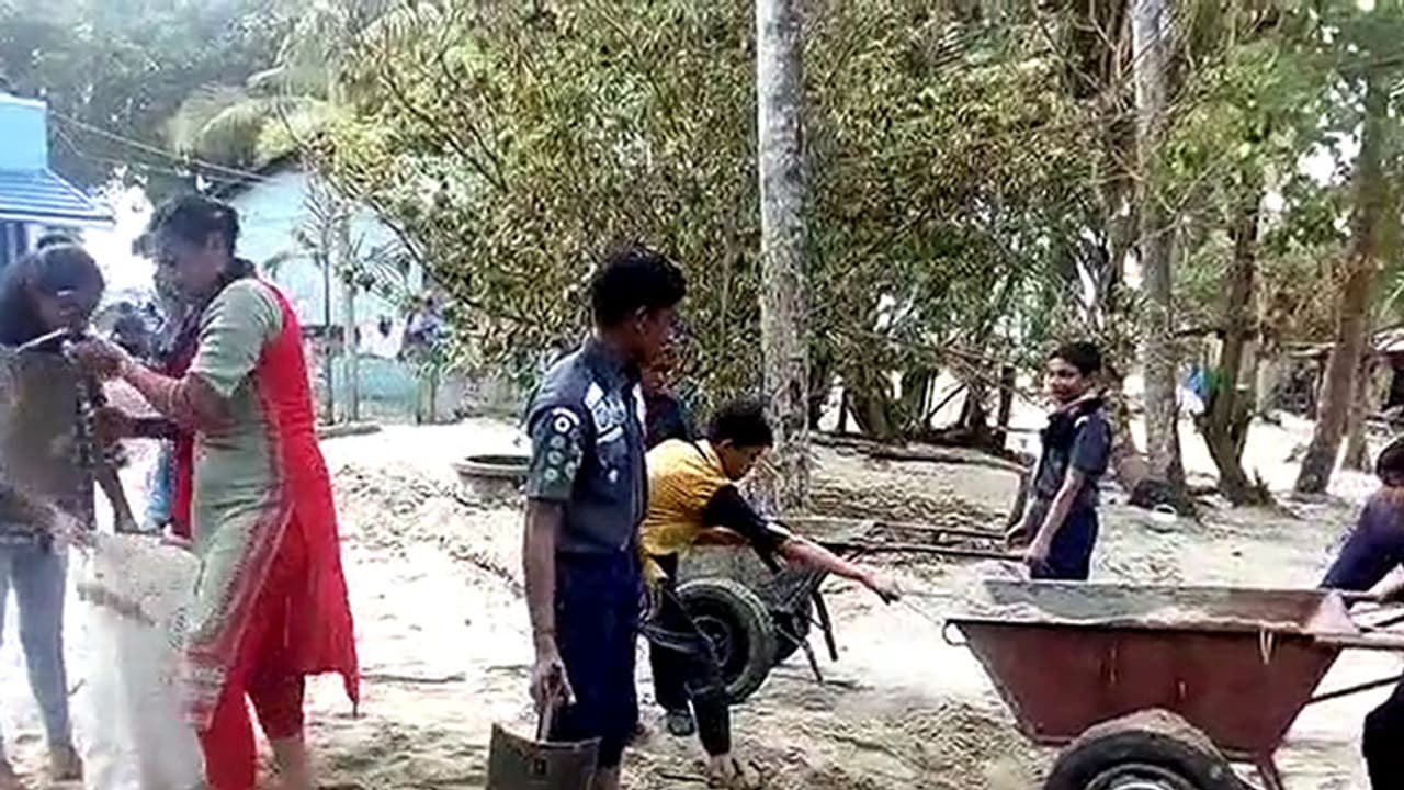 ഓരോ വീടുകളിലും ഭക്ഷ്യ ഉല്പ്പന്നങ്ങള് വിതരണം ചെയ്തതിനുശേഷം വിദ്യാര്ത്ഥികളുടേയും അധ്യാപകരുടേയും നേതൃത്വത്തില് പ്രദേശത്ത് അടിഞ്ഞ് കൂടികിടന്ന മണലും മറ്റ് മാലിന്യങ്ങളും നീക്കം ചെയ്തു. സ്കൂള് പ്രിന്സിപ്പല് അമ്പാട്ടി ബാല റെഡ്ഡി, അധ്യാപകരായ ഷിന്സ് മാത്യു, ശ്രീ എം. വി ബൈജു, ശ്രീമതി ശാലിനി നായര് എന്നിവരുടെ നേതൃത്വത്തിലാണ് കുട്ടികള് ചെല്ലാനം കടപ്പുറത്ത് എത്തിയത്.