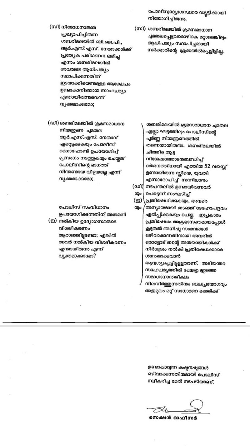 ബിജെപി ആര്എസ്എസ് പ്രവര്ത്തകര്ക്ക് പ്രത്യേക പരിഗണന ലഭിച്ചുവെന്നും അവര് അവിടെ ആധിപത്യം സ്ഥാപിച്ചുവെന്നും അതിനിടയാക്കിയ സാഹചര്യം എന്തായിരുന്നു എന്ന ചോദ്യത്തിന്, സുരക്ഷയൊരുക്കിയ പൊലീസിനല്ലാതെ മറ്റാര്ക്കും അവിടെ ആധിപത്യമില്ലായിരുന്നു എന്നായിരുന്നു മുഖ്യമന്ത്രിയുടെ മറുപടി.