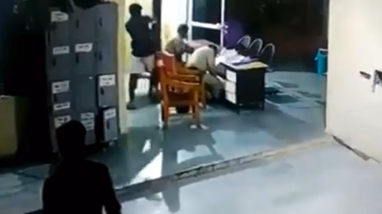 ഈ സംഭവങ്ങളെല്ലാം സ്റ്റേഷനകത്ത് നില്ക്കുന്ന മറ്റൊരാള് നോക്കി നില്ക്കുന്നുണ്ടെങ്കിലും ഇയാള് പ്രതികരിക്കുന്നില്ല. പൊലീസുകാരെ ആക്രമിച്ച പ്രതി രക്ഷപ്പെട്ടെങ്കിലും അടുത്ത ദിവസം തന്നെ പിടിയിലായെന്നാണ് വിവരം. ആക്രമണത്തില് പരിക്കേറ്റ രണ്ട് പൊലീസുകാരേയും അടുത്തുള്ള ആശുപത്രിയില് എത്തിച്ചു. ഇതില് ഗുരുതരാവസ്ഥയിലുള്ള ഒരാളെ ദില്ലിയിലെ ആശുപത്രിയിലേക്ക് മാറ്റിയെങ്കിലും ഈ ഉദ്യോഗസ്ഥന് പിന്നീട് മരിച്ചു. സെപ്തംബര് ഒന്പതിനാണ് ഈ ക്രൂരകൃത്യം അരങ്ങേറിയത്.