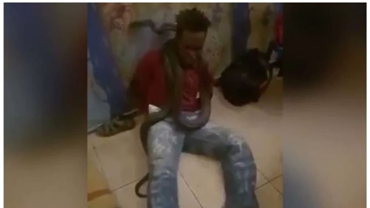 യുവാവിന്റെ കൈകള് പുറകില് കൂട്ടിക്കെട്ടി പാമ്പിനെ മുഖത്തിന് നേരെ ഉയര്ത്തിയാണ് ഉദ്യോഗസ്ഥന് ചോദ്യം ചെയ്തത്. പിന്നീട് യുവാവിന്റെ കഴുത്തില് പാമ്പിനെ ചുറ്റിയിടുകയും ചെയ്യതു.