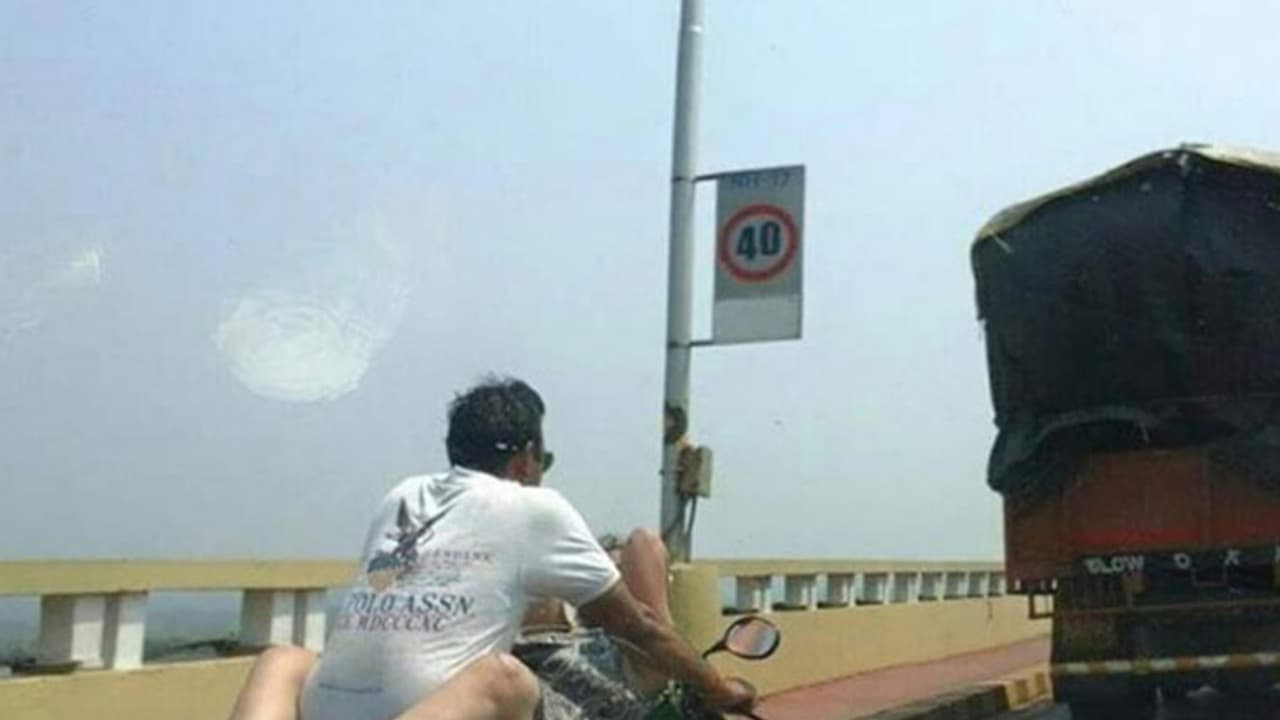 പനാജിക്ക് സമീപത്തെ മാന്ഡവി പാലത്തിനു മുകളിലൂടെ യാത്ര ചെയ്യുന്ന ഇവരുടെ ദൃശ്യങ്ങളഴ് നാട്ടുകാരില് ചിലര് പകര്ത്തി സാമൂഹിക മാധ്യമങ്ങളില് പോസ്റ്റു ചെയ്തു. ഇരുവരും ഹെല്മറ്റ് ധരിച്ചിരുന്നില്ല. ബൈക്കോടിക്കുന്ന ഭര്ത്താവിന്റെ എതിര്വശത്തായി ബൈക്കില് കിടക്കുകയായിരുന്നു ഭാര്യ.