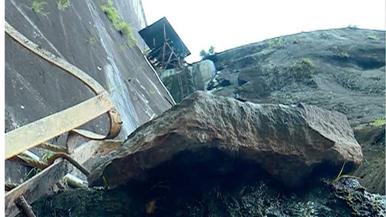 ഇടുക്കി അർച്ച് ഡാമിന്റെ പിൻ ഭാഗത്ത് കൂറ്റൻ പാറ അടർന്നു വീണു. അണക്കെട്ട് നിർമ്മിച്ചിരിക്കുന്ന കുറവൻ മലയുടെ ഭാഗമായ പാറക്കഷ്ണമാണ് അടർന്നു വീണത്. ഡാമിന്റെ പിൻഭാഗത്ത് സ്ഥാപിച്ചിരുന്ന ഏണിയുടെ പടികളും കല്ലു വീണു തകർന്നു.