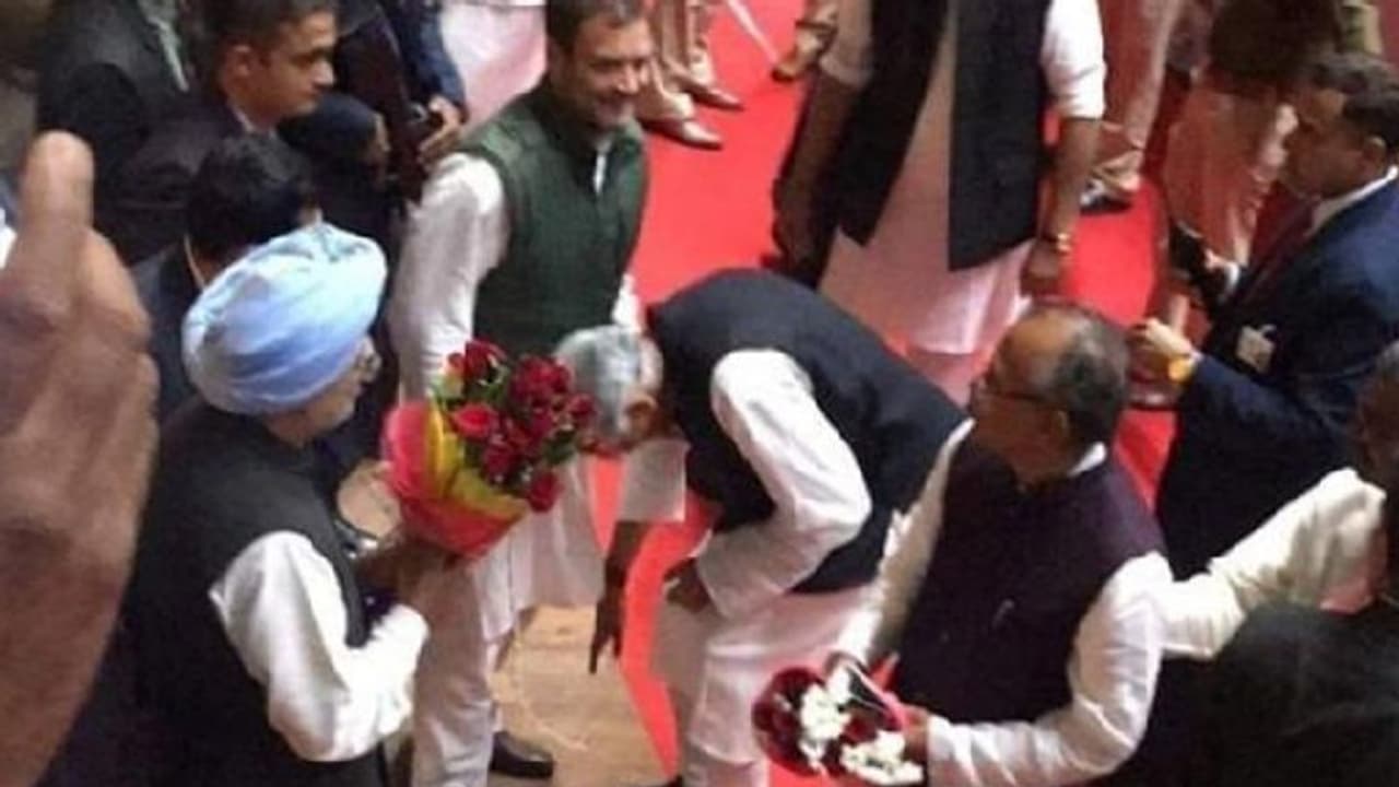 ''48 കാരനായ മുതിര്ന്ന നേതാവ് 80 കാരനായ യുവ നേതാവിനെ അനുഗ്രഹിക്കുന്നു, എന്റെ സുഹൃത്ത് പപ്പു ജി വലിയവനാണ് '' എന്ന തലക്കെട്ടിലായിരുന്നു ചിത്രം പ്രചരിച്ചിരുന്നത്.
