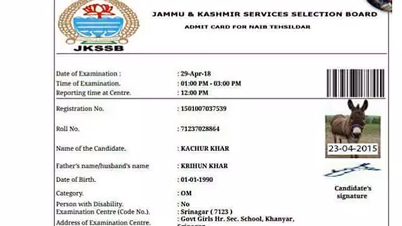 ജമ്മുകാശ്മീരില്‍ കഴുതയ്ക്ക് ഹാള്‍ടിക്കറ്റ് അനുവദിച്ചത് വിവാദമാകുന്നു