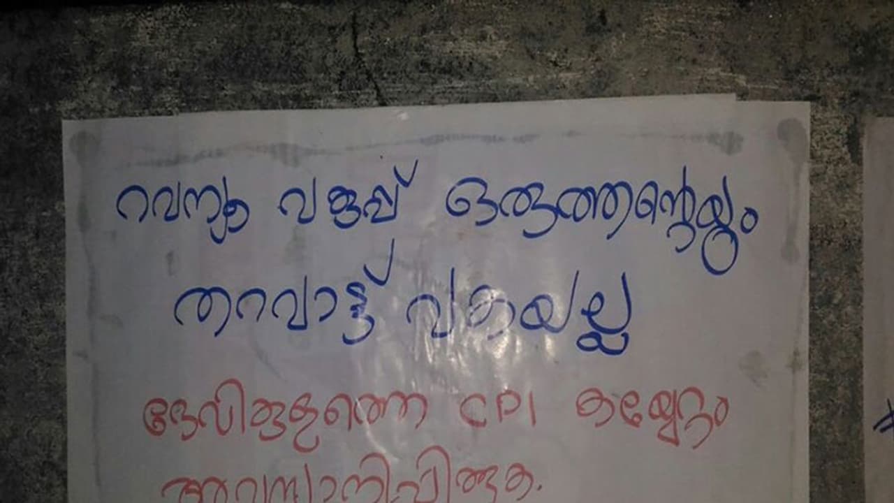 ദേവികുളം: സി.പി.ഐക്കെതിരെ ദേവികുളത്ത് പോസ്റ്റര് പ്രതിഷേധവുമായി ഡി.വൈ.എഫ്.ഐ. റവന്യൂ വകുപ്പ് ഭരിക്കുന്ന സി.പി.ഐയുടെ ഓഫീസ് ദേവികുളത്ത് കൈയ്യേറ്റ ഭൂമിയിലാണ് ഉള്ളതെന്നും, ഇടതുമുന്നണിയുടെ സ്വപ്ന പദ്ധതിയായ ലൈഫ് പദ്ധതി ഇല്ലാതാക്കിയത് സി.പി.ഐയാണെന്നും, നേതാക്കളുടെ ഗുണ്ടായിസം അവസാനിപ്പിക്കുക തുടങ്ങിയ പോസ്റ്ററുകളാണ് ദേവികുളത്തെ പോലീസ് സ്റ്റേഷന്, ആര്.ഡി.ഒ ഓഫീസിന്റെ കവാടങ്ങളിലും പ്രത്യക്ഷപ്പെട്ടിരിക്കുന്നത്.