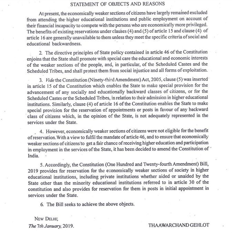 സംവരണ ബില്ലിന്റെ പൂർണരൂപം ചുവടെ: