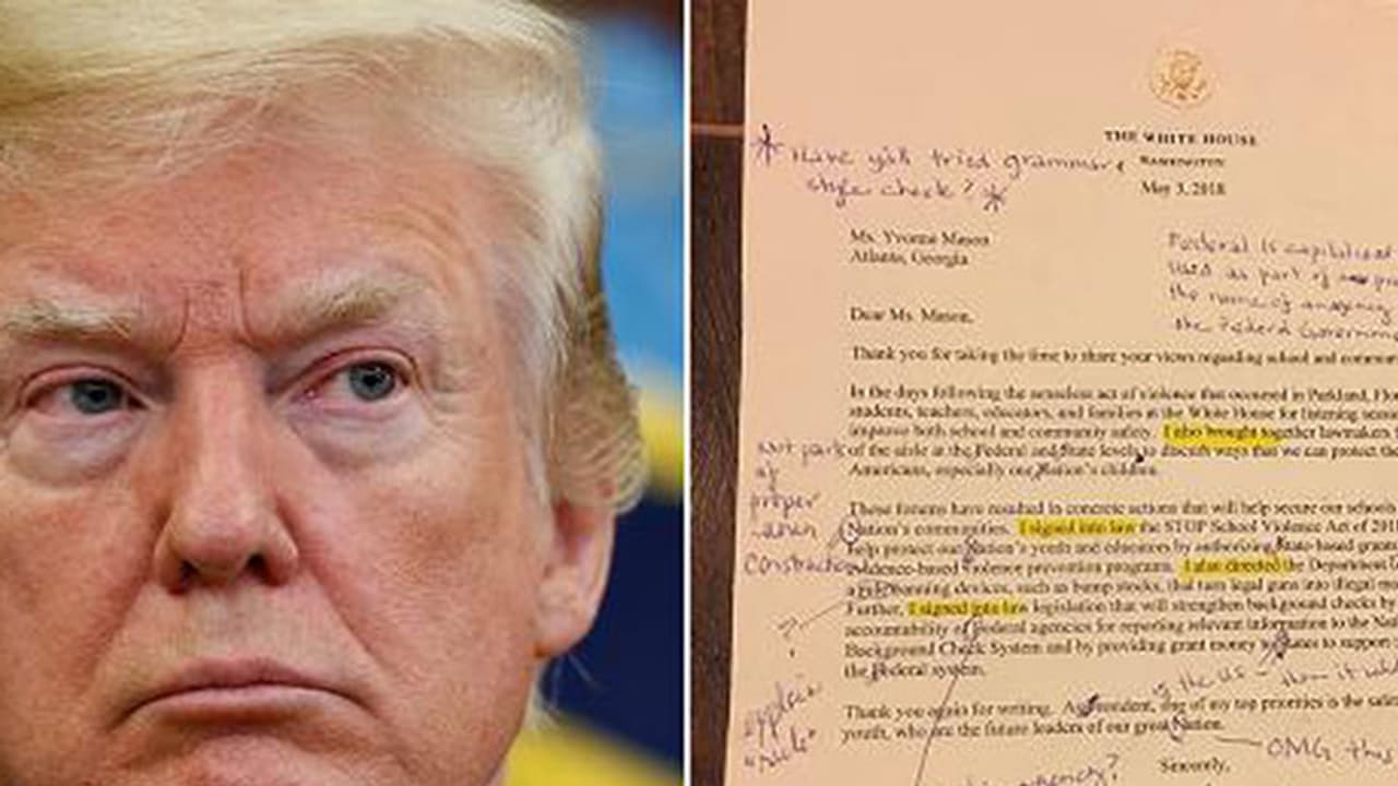 ട്രംപിന്‍റെ ഓഫീസില്‍നിന്നെത്തിയ കത്ത് തിരുത്തി അധ്യാപിക