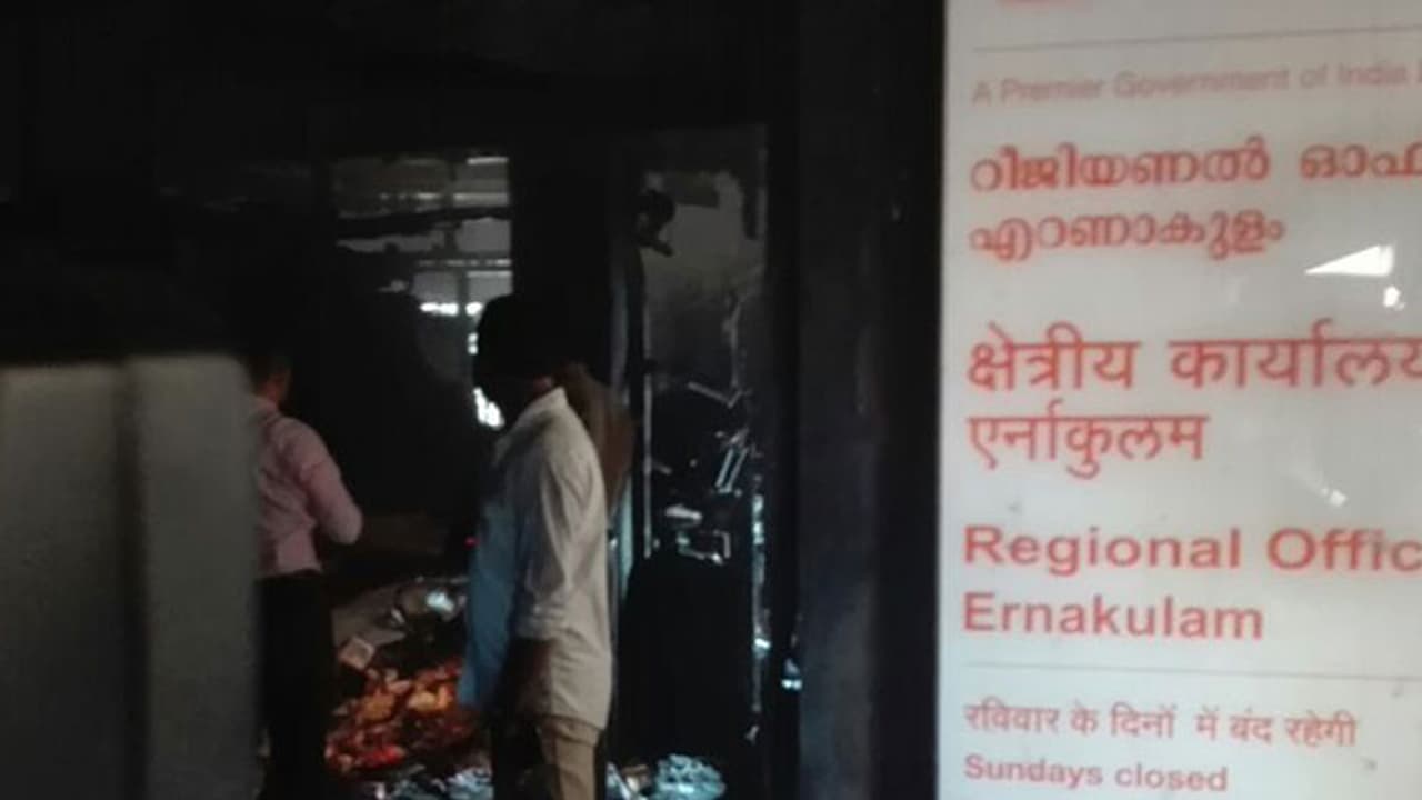 രാവിലെ 6.30ഓടെടെയായിരുന്നു സംഭവം. ടി.ഡി റോഡ് വസുദേവ ബില്ഡിങിലെ ഒന്നാം നിലയില് പ്രവര്ത്തിക്കുന്ന ബാങ്ക് ഓഫ് ബെറോഡയുടെ റീജ്യണല് ഓഫീസിലാണ് തീപടര്ന്നത്. പുക ഉയരുന്നതു കണ്ട വഴിയാത്രക്കാര് ഫയര്ഫോഴ്സിനെ വിവരമറിയിച്ചു. നാലുയൂണിറ്റ് ഫയര്ഫോഴ്സ് സംഘം പാഞ്ഞെത്തി. കതക് പൊളിച്ച് അകത്തുകടന്നു. ഒരുമണിക്കൂറിലേറെ പരിശ്രമിച്ചിട്ടാണ് തീയണയ്ക്കാനായത്. അപ്പോഴേക്കും ബാങ്കിന്റെ ഒരുഭാഗം മുഴുവന് അഗ്നിക്കിരയായി.