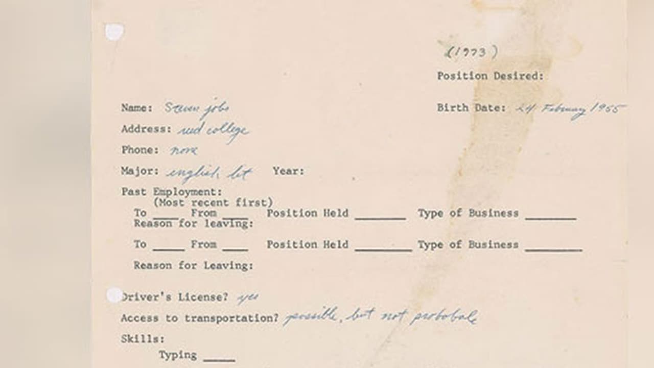 ആപ്പിള് സ്ഥാപകന് സ്റ്റീവ് ജോബ്സ് 45 വര്ഷങ്ങള്ക്ക് മുന്പ് 1973ല് ഒരു ജോലി തേടി നടന്നപ്പോള് എഴുതിയതാണിത്. സ്റ്റീവന് ജോബ്സ് എന്നാണ് പേരെഴുതിയിരിക്കുന്നത്. ഏത് പദവിയിലേക്കാണ് അപേക്ഷ നല്കുന്നതെന്ന് എഴുതിയിട്ടില്ല. ഇലക്ട്രോണിക്സ് ടെക് / ഡിസൈന് എഞ്ചിനീയര് എന്നിവയാണ് പ്രത്യക കഴിവുകളായി അവകാശപ്പെടുന്നത്. കംപ്യൂട്ടര് അറിയുമോ എന്ന ചോദ്യത്തിന് അതെ എന്ന് മറുപടിയുണ്ട്! ഐ ഫോണ് കൊണ്ട് ലോകത്തെ വിസ്മയിപ്പിച്ച സ്റ്റീവിന് അന്ന് പക്ഷേ ഫോണ് എന്ന കോളത്തില് എഴുതാന് ഒന്നുമില്ലായിരുന്നു. None എന്നാണ് പൂരിപ്പിച്ചിരിക്കുന്നത്.