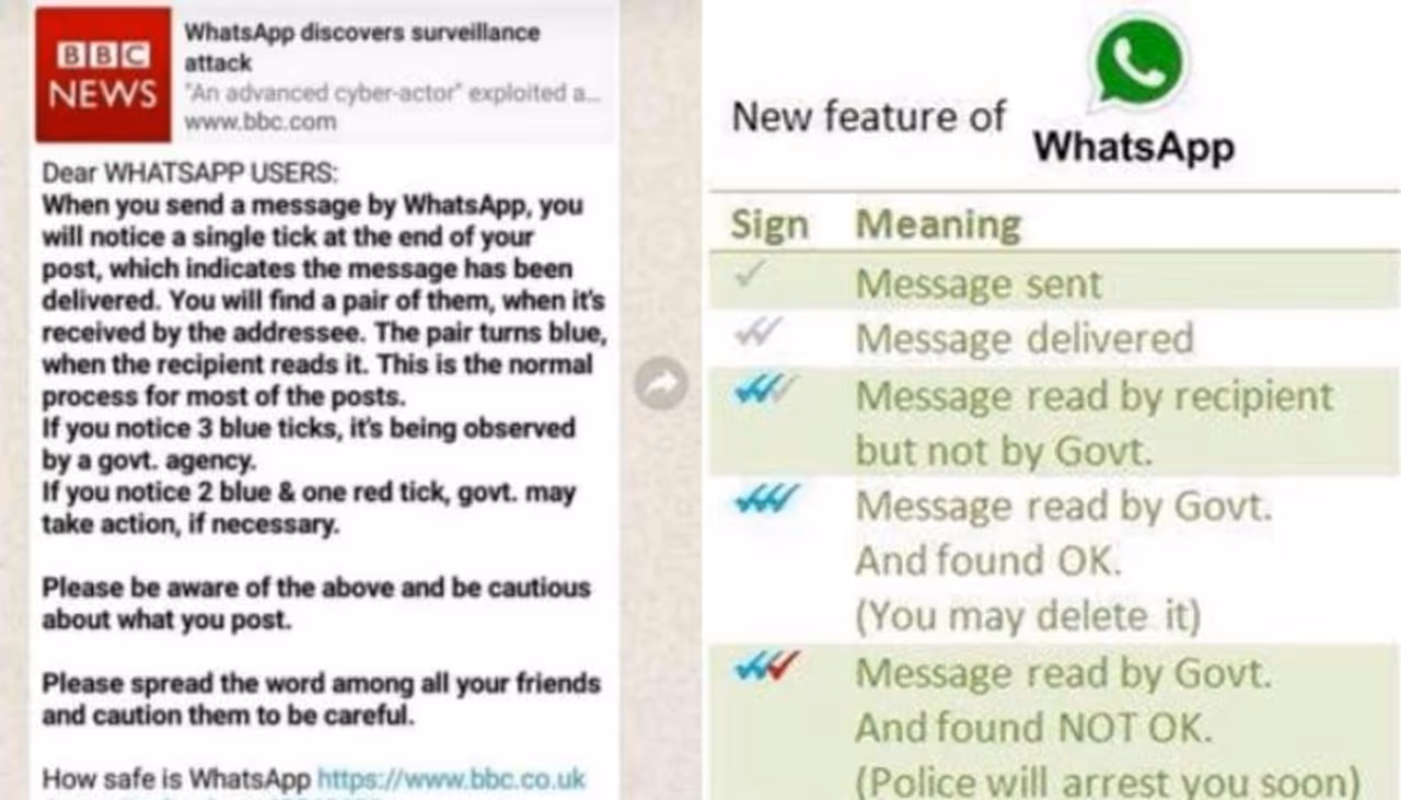- നിങ്ങള് അയക്കുന്ന മെസേജുകള്ക്ക് താഴെയായി മൂന്ന് നീല ടിക് മാര്ക്കുകള് കാണുന്നുണ്ടെങ്കില് നിങ്ങളുടെ മെസേജ് സര്ക്കാര് നിരീക്ഷണത്തിലാണ്, എന്നാല് പ്രശ്നങ്ങളൊന്നുമില്ല