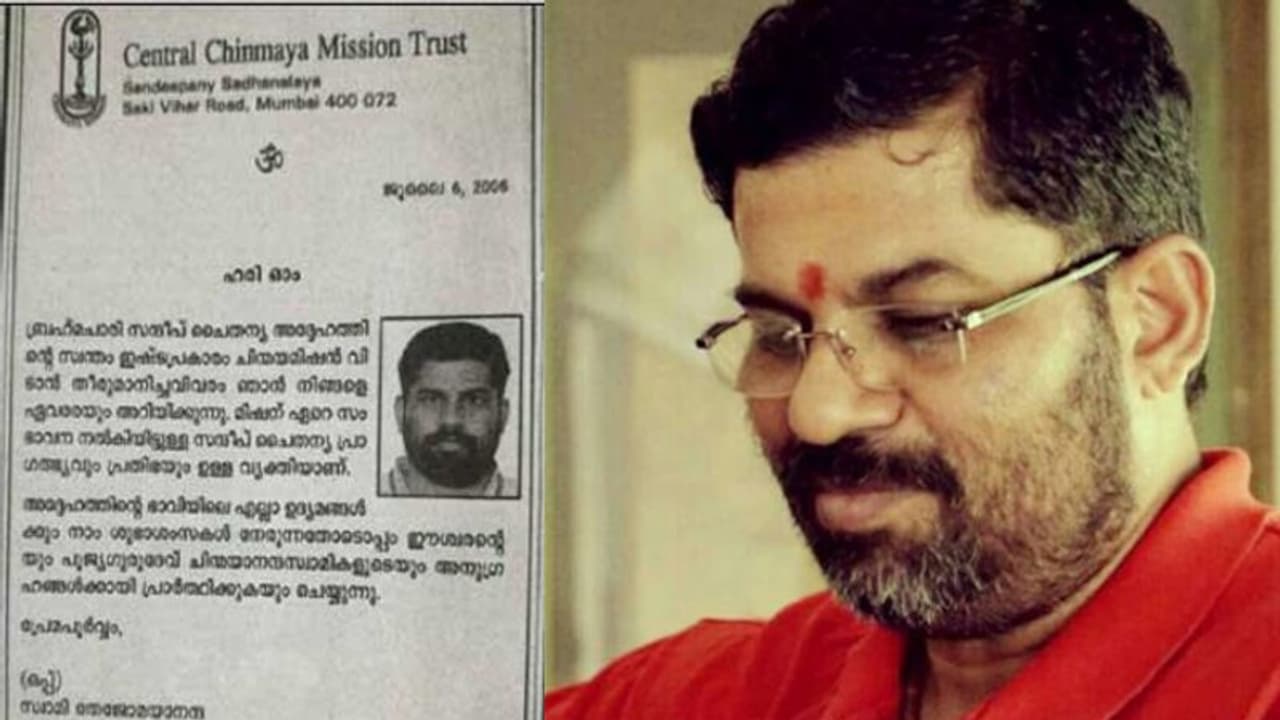 ചിന്മയാ മിഷന് വേണ്ടി സ്വാമി തേജോമയാനന്ദ 2006 ജൂലൈ ആറിനാണ് പത്ര കുറിപ്പ് ഇറക്കിയത്. ബ്രഹ്മചാരി സന്ദീപ് ചൈതന്യ അദ്ദേഹത്തിന്റെ സ്വന്തം ഇഷ്ടപ്രകാരം ചിന്മയമിഷന് വിടാന് തീരുമാനിച്ച വിവരം ഏവരെയും അറിയിക്കുന്നു. മിഷന് ഏറെ സംഭാവന നല്കിയിട്ടുള്ള സന്ദീപ് ചൈതന്യ പ്രാഗത്ഭ്യവും പ്രതിഭയും ഉള്ള വ്യക്തിയാണ്.