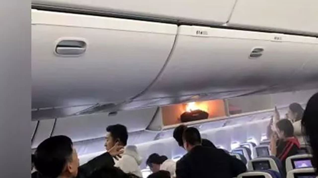 A fire broke out in the luggage rack of a China Southern airplane in Guangzhou on Sunday after a portable charger carried by a passenger caught fire during the boarding process. The fire was put out promptly. Passengers have been relocated to another plane. pic.twitter.com/8BzNkxh6rg