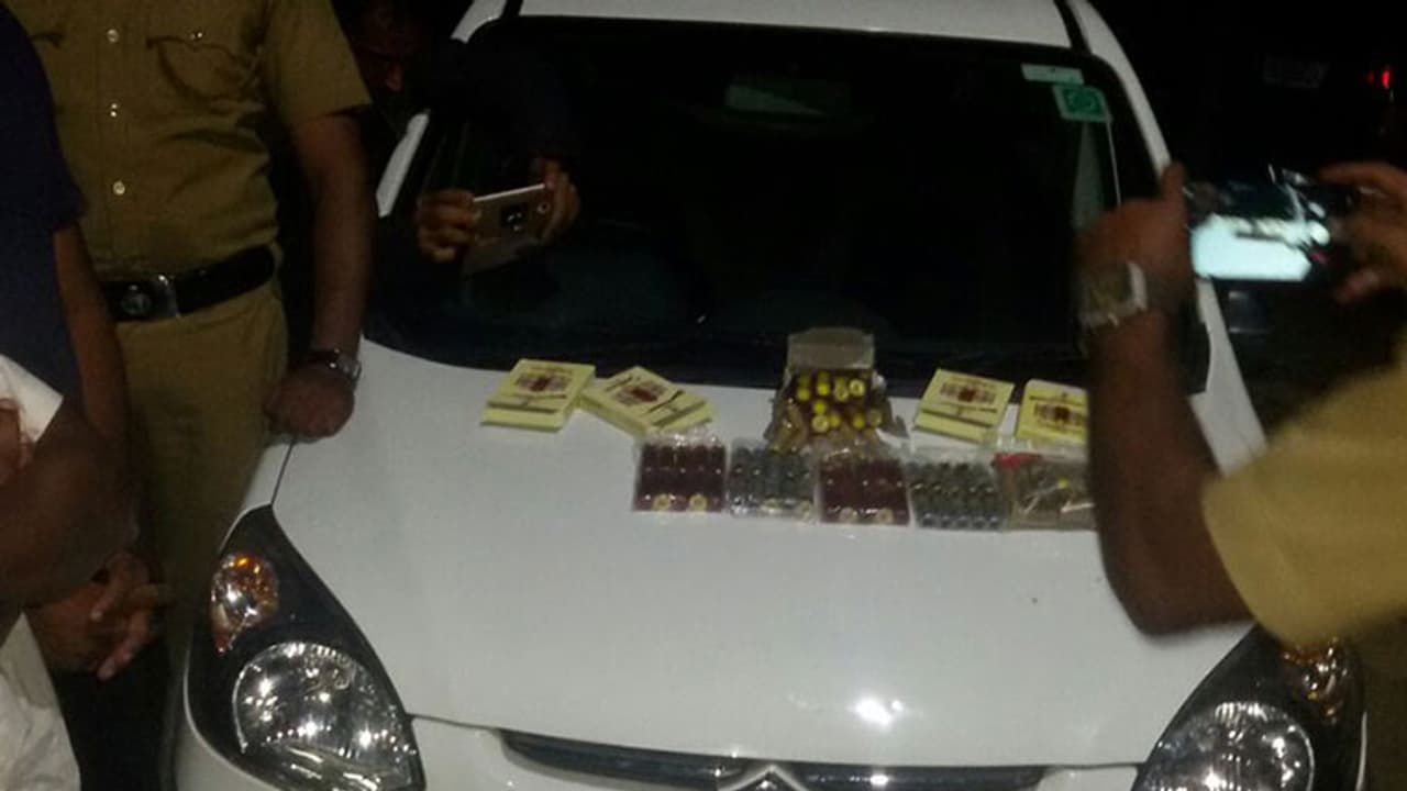 ഡബിള് ബാരല് തോക്കിന്റെതുള്പ്പെടെയുള്ള വിവിധയിനം തിരകളാണ് പിടിച്ചത്. സംഭവവുമായി ബന്ധപ്പെട്ട് മലപ്പുറം സ്വദേശി സി. സുധീര്, പാലക്കാട് സ്വദേശികളായ ഫക്രുദ്ദിന് അലി അഹമ്മദ്, എം.അക്ബര്, ടി . മുഹമ്മദ് അലി എന്നിവരെയാണ് അറസ്റ്റ് ചെയ്തത്. പോലീസ് അന്വേഷണം ആരംഭിച്ചു.