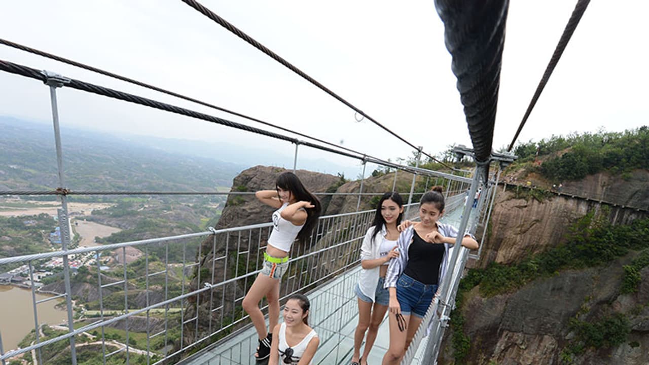 430 മീറ്റര് നീളത്തിലുള്ള പാലം. അതും 300 അടി ഉയരത്തില്. മധ്യ ചൈനയില് സാംഗ്ജിയാജിയിലെ ഗ്ലാസ്സ് പാലം സാഹസികരേയും സഞ്ചാരികളേയും ഒരു പോലെ ആകര്ഷിക്കുമെന്നുറപ്പാണ്. ടിയന്മെന് പര്വ്വത ദേശീയോദ്യാനത്തിലെ രണ്ട് മലനിരകളെ ബന്ധിപ്പിക്കുന്ന ഈ പാലം 99 ഗ്ലാസ്സ് പാളികള് അടുക്കിയാണ് നിര്മ്മിച്ചിരിക്കുന്നത്. പാലത്തില് കയറി താഴോട്ടുനോക്കിയാല് കൈകാലുകള് വിറയ്ക്കും.