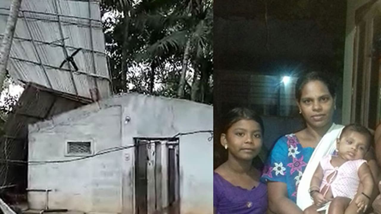 ഇന്നലെ വൈകിട്ട് അഞ്ച് മണിയോടെ അപ്രതീക്ഷിതമായി വീശിയടിച്ച കാറ്റിൽ ഷീറ്റ് മേഞ്ഞ വീടിന്റെ മേൽക്കൂര മൊത്തത്തിൽ പറന്നുപൊങ്ങി. കൂട്ടത്തിൽ മേൽകൂരയിൽ കെട്ടിയിരുന്ന തൊട്ടിലിലുറങ്ങുകയായിരുന്ന കുഞ്ഞും തൊട്ടിലോടെ കാറ്റിൽ പറന്നുപോയി. ഭാഗ്യത്തിന് വീടിനോട് ചേർന്ന് നിന്ന തെങ്ങിൽ തട്ടി ഷീറ്റ് നിന്നതിനാൽ വലിയ അത്യാഹിതം ഒഴിവായി. സംഭവ സമയം ഷീബയും മറ്റ് രണ്ട് മക്കളും വീട്ടിലുണ്ടായിരുന്നു. അമ്മയുടെ കൺമുന്നിലായിരുന്നു സംഭവം.