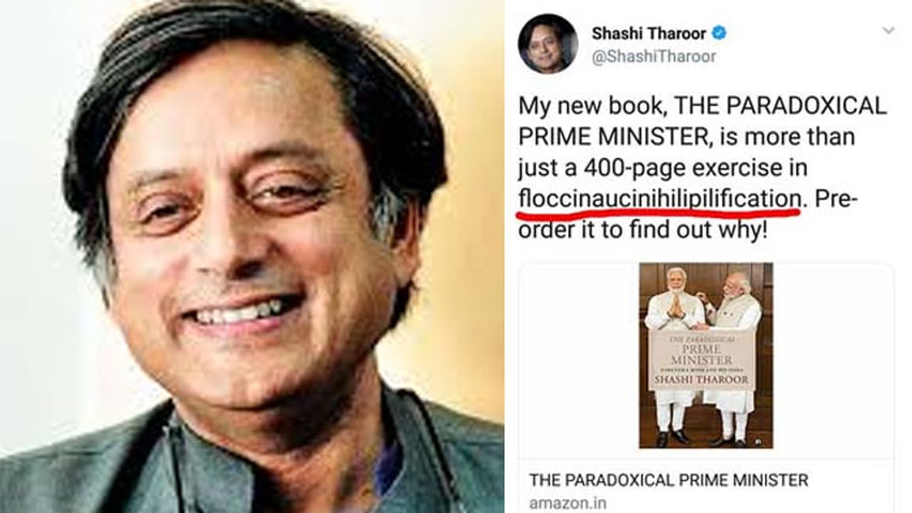 പ്രധാനമന്ത്രി നരേന്ദ്രമോദിയെ കുറിച്ചുള്ള തന്റെ പുതിയ പുസ്തകത്തിന്റെ പ്രകാശനവുമായി ബന്ധപ്പെട്ട ട്വീറ്റിലാണ് ഉച്ചരിക്കാന് പ്രയാസമുള്ള ഈ വാക്ക് തരൂര് ഉപയോഗിച്ചത്. My new book, THE PARADOXICAL PRIME MINISTER, is more than just a 400-page exercise in floccinaucinihilipilification എന്നാണ് തരൂരിന്റെ ട്വീറ്റ്. മൂല്യമോ പ്രാധാന്യമോ ഇല്ലാതെ തള്ളിക്കളയുന്ന സ്വഭാവത്തിന്റെയോ അല്ലെങ്കില് പ്രവൃത്തിയുടേയോ വിനിമയമാണ് പുതിയ പുസ്തകമായ ദ പാരഡോക്സിക്കല് പ്രൈം മിനിസ്റ്റര്. അതിന്റെ പ്രീ ബുക്കിങ് ആരംഭിച്ചിട്ടുണ്ടെന്നുമായിരുന്നു ട്വീറ്റിന്റെ പൂര്ണരൂപം. ട്വീറ്റ് പുറത്തുവന്നതിന് പിന്നാലെ വ്യാപകമായ ട്രോളുകളും എത്തിത്തുടങ്ങിയിട്ടുണ്ട്.