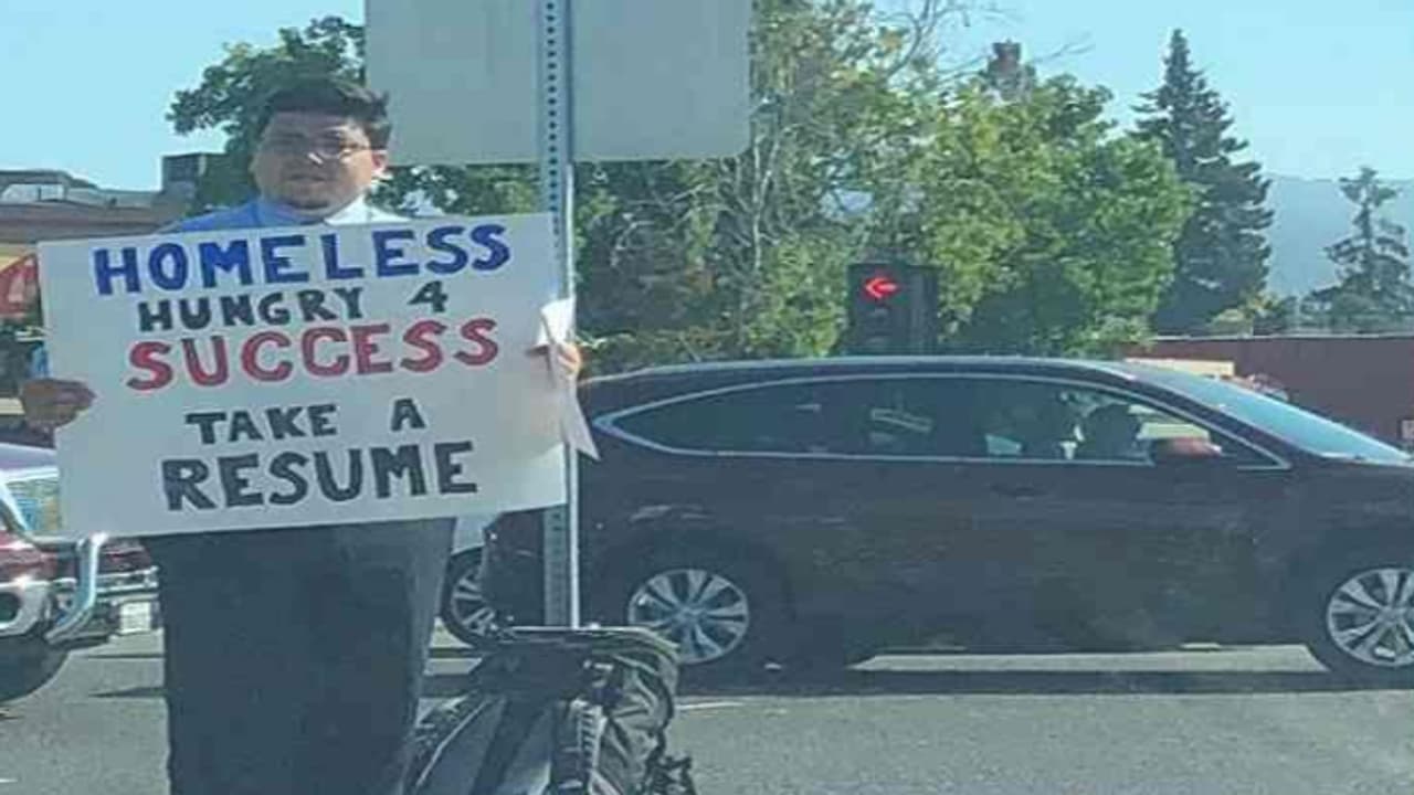 ഒടുവില് മറ്റൊരു ഗതിയുമില്ലാതായതോടെയാണ് ഡേവിഡ് പുതിയ ആശയവുമായി തെരുവിലേക്കിറങ്ങിയത്. എക്സിക്യൂട്ടീവ് ലുക്കില് വസ്ത്രം ധരിച്ച് കൈയ്യില് പ്ലക്കാർഡുമായി റോഡ് സൈഡില് നില്ക്കുന്ന ഡേവിഡിനെ അത്ഭുതത്തോടെയാണ് ആദ്യം ആളുകള് നോക്കിയത്. പ്ലക്കാർഡ് വായിച്ചവര് ഞെട്ടി. 'homeless,hungry 4 success,take a resume'-; എന്നാണ് പ്ലക്കാർഡിലെ വാചകം.