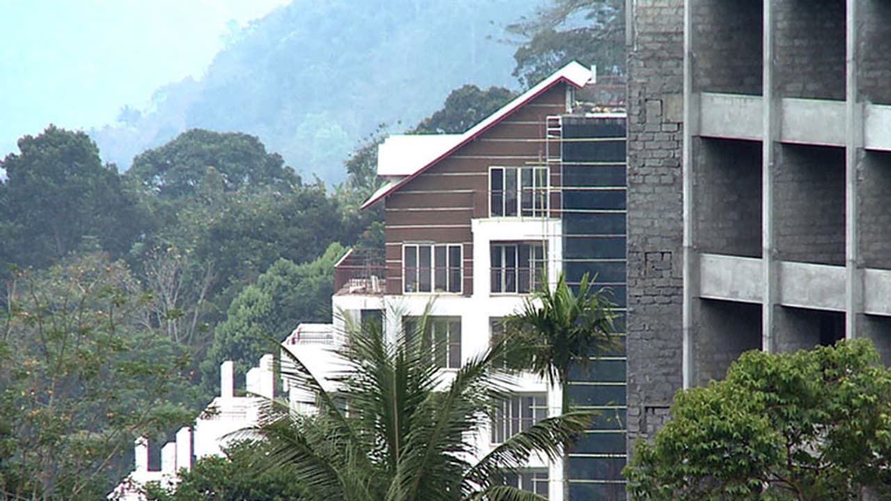 പള്ളിവാസൽ രണ്ടാം മൈലിലെ പരിസ്ഥിതി ദുർബല മേഖലയിൽ ജില്ലാഭരണകൂടത്തിന്റെ അനുമതിയില്ലാതെ നാലുനിലകളിൽ ഉയരുന്നത് റിസോർട്ടിനായുള്ള രണ്ട് കെട്ടിടങ്ങൾ. 2016ൽ നിർമ്മാണം തുടങ്ങിയപ്പോൾ തന്നെ, കളക്ടറുടെ നിരാക്ഷേപ പത്രമില്ലെന്ന് കാട്ടി റവന്യൂവകുപ്പ് കെട്ടിടത്തിന് സ്റ്റോപ് മെമ്മോ നൽകി. ഇതവഗണിച്ച് നിർമ്മാണം തുടർന്നതിനെ തുടർന്ന് ഇക്കഴിഞ്ഞ ഒക്ടോബറിലും നിർമ്മാണം നിർത്തിവയ്ക്കാൻ ജില്ലാഭരണകൂടം ഉത്തരവിട്ടു. മാസങ്ങളോളം അനക്കമില്ലാതെ കിടന്ന കെട്ടിടത്തിന്റെ പണിയാണ് ഇക്കഴിഞ്ഞ ദിവസങ്ങളിൽ വീണ്ടും തുടങ്ങിയത്.