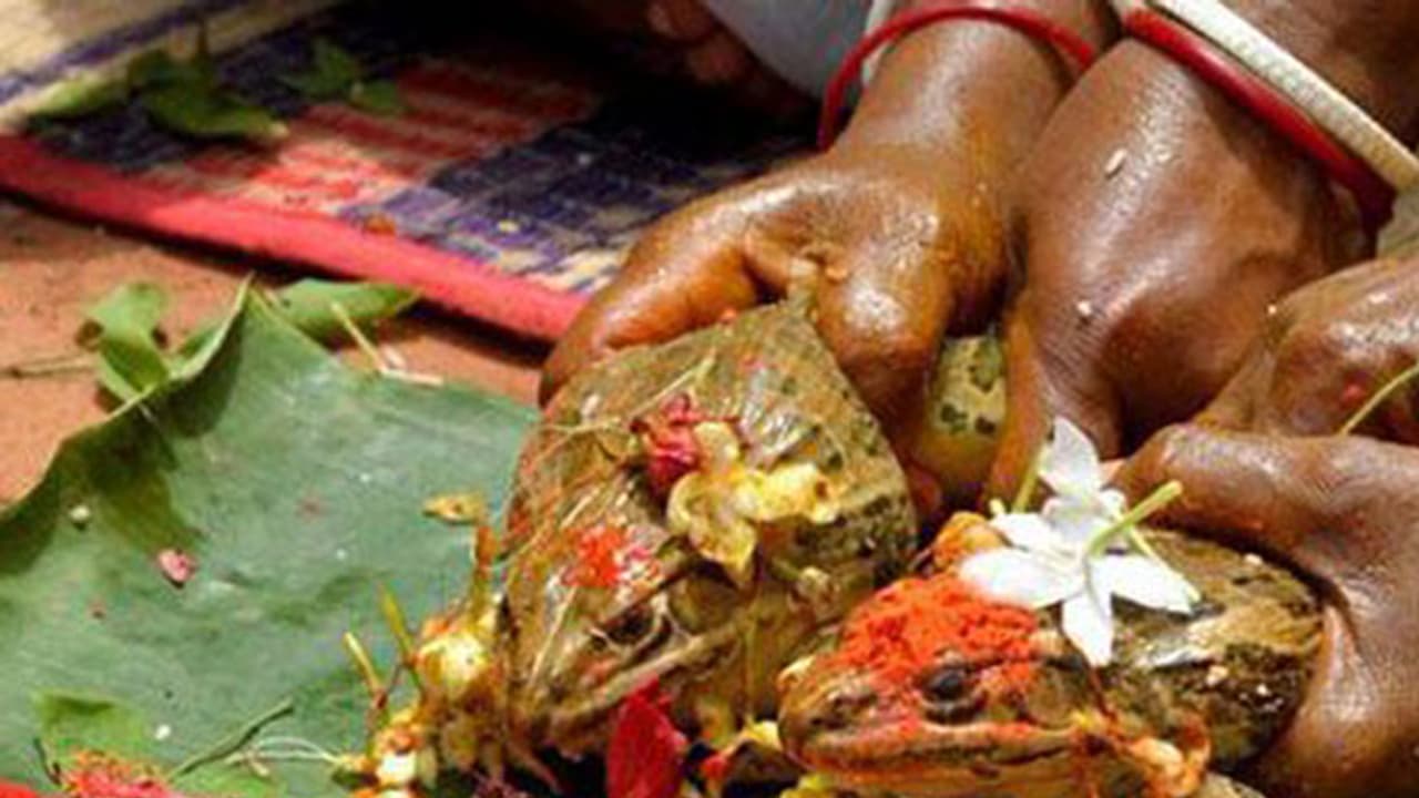 കഴിഞ്ഞ ദിവസങ്ങളിലായി നടത്തിയ യാഗത്തിന് ആയിരക്കണക്കിന് തവളകളെയാണ് കഴുത്ത് ഞെരിച്ച് കൊന്നൊടുക്കിയത്.