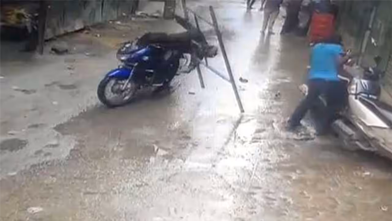 ബംഗളരുവിലെ സുനകല്പ്പെട്ട് ഭാഗത്താണ് അപകടമുണ്ടായത്. ചന്ദന് എന്ന ആളാണ് ബൈക്കില് സഞ്ചരിച്ചിരുന്നത്. ഇയാള് അപകടനില തരണം ചെയ്തുവെന്ന് ഡോക്ടര്മാര് അറിയിച്ചു. ഓഗസ്റ്റ് 31 ന് നടന്ന സംഭവത്തിന്റെ ദൃശ്യങ്ങള് ഇപ്പോഴാണ് പുറത്തുവരുന്നത്. സംഭവത്തില് കെട്ടിട ഉടമയ്ക്കും മേല്നോട്ടക്കാരനുമെതിരെ പൊലീസ് കേസെടുത്ത് അന്വേഷണം ആരംഭിച്ചു.
