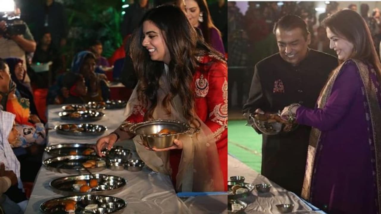 മറ്റുള്ളവരിൽ നിന്ന് വ്യത്യസ്ഥമായി വിശക്കുന്ന വയറുകൾക്ക് അന്നം നൽകിയാണ് മുകേഷ് അംബാനി തന്റെ മകളുടെ വിവാഹ ആഘോഷങ്ങൾക്ക് തുടക്കമിട്ടത്. ‘അന്ന സേവ’ എന്ന പേരിലാണ് നിർദ്ധനർക്ക് ഭക്ഷണ വിതരണം നടത്തുന്നത്. ഡിസംബർ ഏഴ് മുതൽ 10 വരെ നടക്കുന്ന അന്നദാനത്തിൽ 5,100 പേർക്ക് ദിവസവും മൂന്ന് നേരം ഭക്ഷണം നൽകും. അംബാനി കുടുംബാംഗങ്ങളും പിരമൽ കുടുംബവും ചേർന്നാണ് അന്ന സേവയിൽ ആളുകൾക്ക് ഭക്ഷണം വിളമ്പുന്നത്.