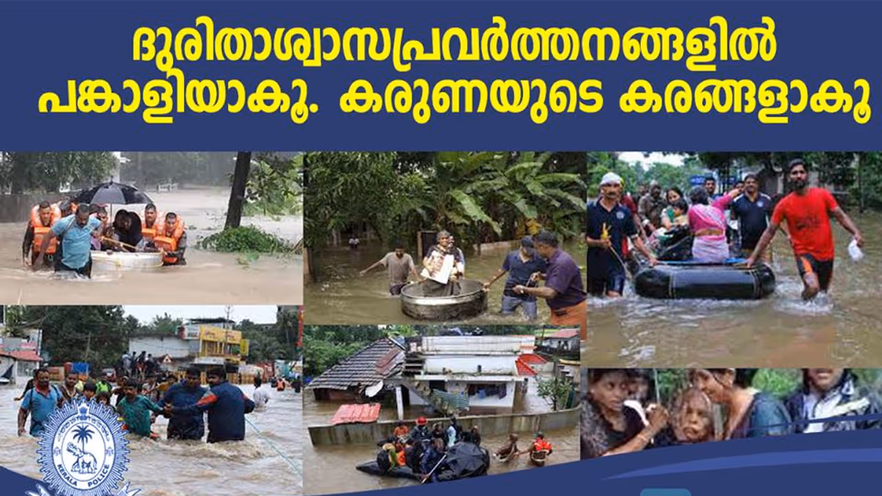പ്രളയക്കെടുതില് ദുരന്തം അനുഭവിക്കുന്നവരെ രക്ഷപ്പെടുത്താന് രാപ്പകല് ഭേദമില്ലാതെ രക്ഷാപ്രവര്ത്തനം നടക്കുകയാണ്. ദുരിതാശ്വാസ പ്രവര്ത്തനങ്ങളില് പങ്കാളിയാകാന് അഭ്യര്ത്ഥന നടത്തുകയാണ് കേരള പൊലീസ്.