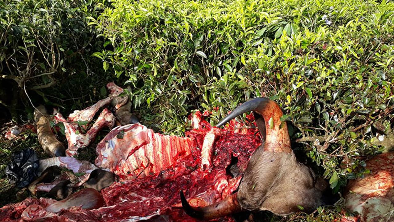 തൊഴിലാളികള് നല്കിയ വിവരത്തെ തുടര്ന്നെത്തിയ വനപാലകര് പോലീസ് നായയെ ഉപയോഗിച്ച് പരിശോധനങ്ങള് നടത്തിയെങ്കിലും പ്രതികളെ കണ്ടെത്താന് കഴിഞ്ഞില്ല. ബുധനാഴ്ച രാത്രിയില് തെയില തോട്ടത്തില് വെടിയൊച്ച കേട്ടതായി തൊഴിലാളികള് വനപാലകരെ അറിയിച്ചിരുന്നു. എന്നാല് സംഭവം പുറത്തറിയിക്കാതെ വനപാലകര് ഒളിപ്പിച്ചു വെച്ചിരിക്കുകയാണെന്ന് ആരോപണമുയരുന്നുണ്ട്.