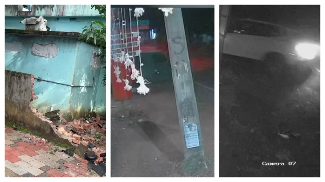 കൊല്ലം ശൂരനാട് ചക്കുവള്ളിയിൽ നിയന്ത്രണംവിട്ട കാർ കടയ്ക്ക് മുന്നിൽ നിർത്തിയിട്ട വാഹനത്തിലും പോസ്റ്റിലും ഇടിച്ച ശേഷം മതിലും തർത്തു.
