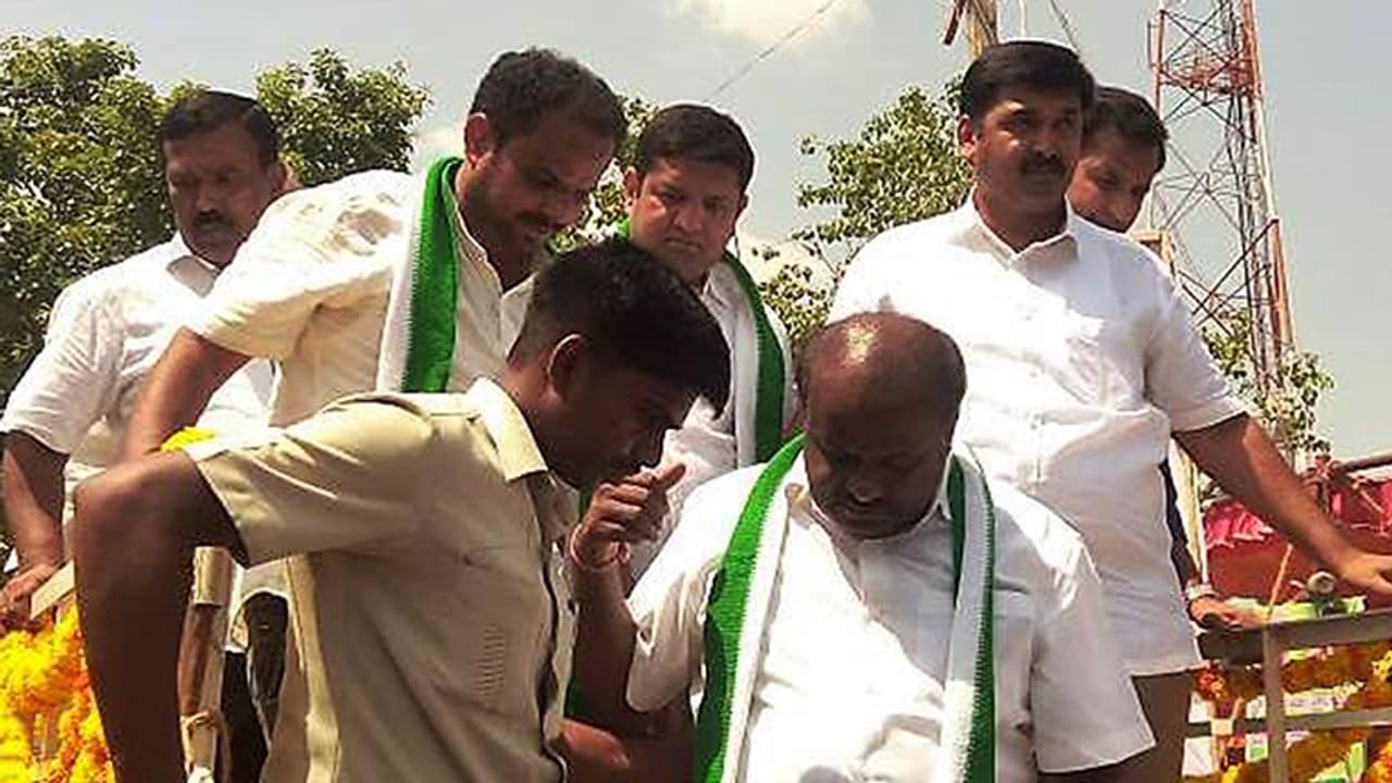 എച്ച് ഡി കുമാരസ്വാമി രാജ്ഭവനിലെത്തി ഗവര്‍ണറെ കാണുന്നു. സര്‍ക്കാറുണ്ടാക്കാനുളള അവകാശവാദം ഔദ്യോഗികമായി ഉന്നയിക്കാനാണ് വാജുഭായ് വാലയെ കാണുന്നത്.