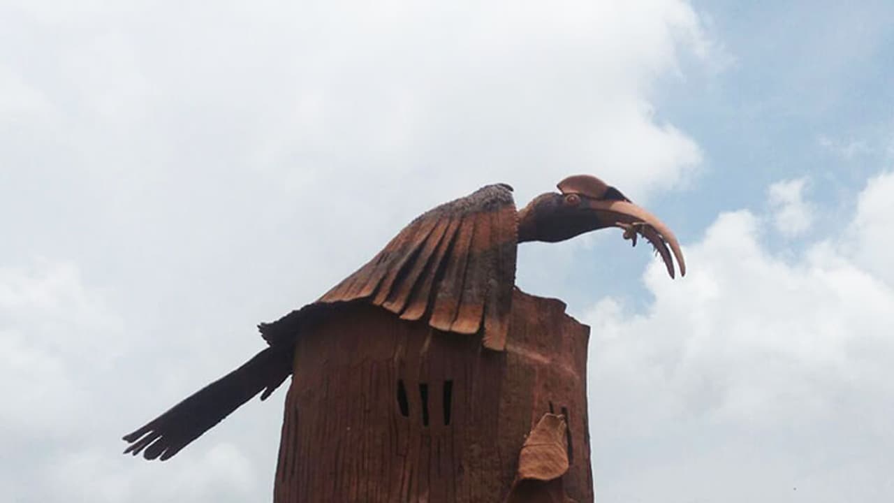 വേഴാമ്പലിനോളം പ്രതീക്ഷയില് ജീവിക്കുന്ന മറ്റൊരു പ്രതീകവും പ്രകൃതിയിലില്ല. രാമക്കല്മേട്ടില് പ്രകൃതി സംരക്ഷണത്തിന്റെ സന്ദേശം ഉയര്ത്തി നിര്മ്മിയ്ക്കാന് മലമുഴക്കിയോളം പോന്ന മറ്റൊരു പ്രതീകവുമില്ല. നാളെയുടെ കരുതലിന്റെ ഓര്മ്മപ്പെടുത്തലായാണ് ശില്പി കെ.ആര്.ഹരിലാല് 34 അടി ഉയരത്തില് ശില്പം ഒരുക്കിയിരിക്കുന്നത്. മണ്ണില് നിന്നും വേരറ്റു തുടങ്ങുന്ന പടുകൂറ്റന് വൃക്ഷം. വൃക്ഷത്തിന് മുകളില് ഒരു വൃക്ഷ തൈയും കടിച്ച് പിടിച്ച് വിഹായുസിലേയ്ക്ക് പറന്നുയരാന് ശ്രമിയ്ക്കുന്ന വേഴാമ്പല്, വരും തലമുറയ്ക്കായി പഴങ്ങള് കൊക്കില് ശേഖരിയ്ക്കുന്നത് പോലെ നാളെയുടെ പ്രകൃതിയ്ക്കായി മരതൈ കൊക്കില് കരുതിയിരിക്കുന്നു.
