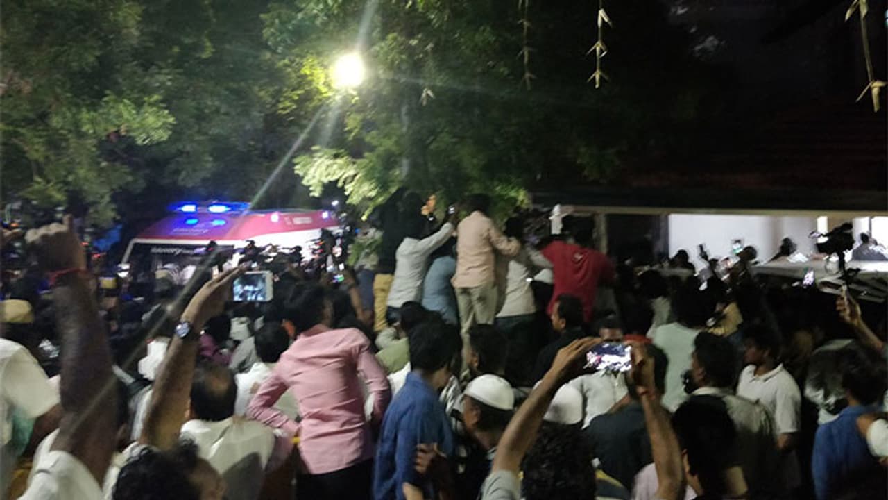 മാധ്യമപ്രവർത്തകരുടെ വൻനിരയ്ക്ക് പുറമേ നൂറുകണക്കിന് ഡിഎംകെ പ്രവർത്തകരും ഗോപാലപുരത്തെ വീട്ടിലേക്ക് ഒഴുകിയെത്തി. ഇതോടെ കൂടുതൽ പൊലീസിനെ ഇവിടെ വിന്യസിക്കുകയും വഴികളിൽ ബാരിക്കേഡുകൾ സ്ഥാപിക്കുകയും ചെയ്തു. രാത്രി പന്ത്രണ്ടരയോടെ കാവേരി ആശുപത്രിയിൽ നിന്നുള്ള ആംബുലൻസ് ഗോപാലപുരത്തെ വീട്ടിലെത്തി. സ്ട്രക്ച്ചറിൽ കിടത്തി ആംബുലൻസിലെത്തിച്ച കരുണാനിധിയെ ആശുപത്രിയിലേക്ക് കൊണ്ടുപോയി.