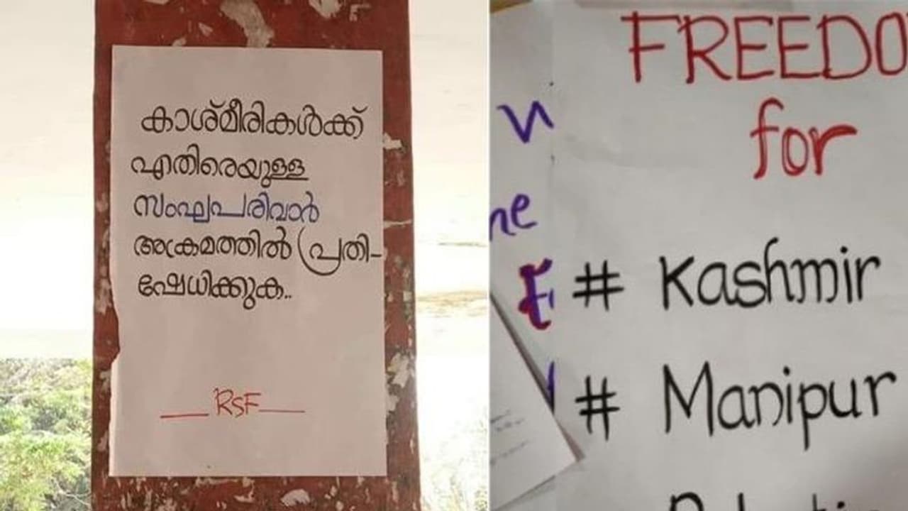 ബുധനാഴ്ചയാണ് ക്യാമ്പസില് പോസ്റ്ററുകള് കണ്ടത്. വെള്ളിയാഴ്ച റിൻഷാദിനെയും മുഹമ്മദ് ഫാരിസിനെയും രാജ്യദ്രോഹക്കുറ്റം ചുമത്തി പൊലീസ് അറസ്റ്റ് ചെയ്തു. രണ്ടാം വര്ഷ ബികോം വിദ്യാര്ത്ഥിയാണ് റിൻഷാദ്. മുഹമ്മദ് ഫാരിസ് ഒന്നാം വര്ഷ ഇസ്ലാമിക് ഹിസ്റ്ററി വിദ്യാര്ത്ഥിയും