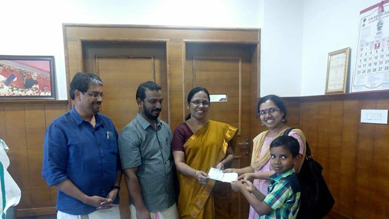 ന്യൂസിലാൻഡിൽ സർക്കാർ സർവീസിൽ നഴ്സായ പ്രീതി ബിനേഷ് ആരോഗ്യവകുപ്പ് മന്ത്രി കെ.കെ ശൈലജയുടെ ഓഫീസിലെത്തിയാണ് ഒരുലക്ഷം രൂപയുടെ ചെക്ക് കൈമാറിയത്.