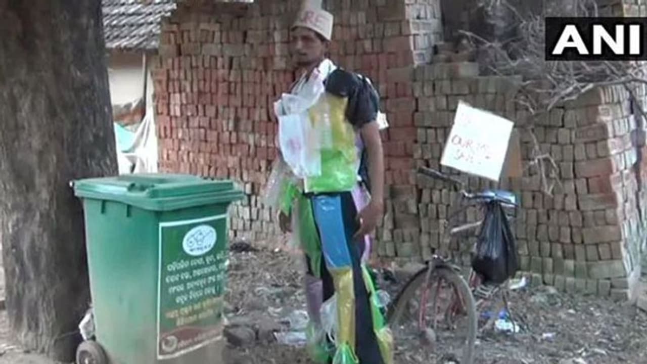 ഭുവനേശ്വര്: ബിഷ്ണു ഭഗത് എന്ന 36 കാരന്റെ വസ്ത്രധാരണം ചിലപ്പോള് നിങ്ങളെ ചിരിപ്പിച്ചേക്കാം. കാരണം വിവിധ നിറത്തിലുള്ള പ്ലാസ്റ്റിക്ക് സഞ്ചികള് ഉടുത്തുള്ള ബിഷ്ണുവിന്റെ സഞ്ചാരം തന്നെ. ഒഡീഷ സ്വദേശിയാണ് ബിഷ്ണു. സഞ്ചരിക്കുന്ന ചവറ്റുകൊട്ടയെന്ന് ആളുകള് കളിയാക്കുമെങ്കിലും ബിഷ്ണുവിനെ അതൊന്നും ബാധിക്കാറില്ല. കാരണം തന്റെ ലക്ഷ്യം തന്നെ. ഭൂമിക്ക് എത്രമാത്രം ദോഷകരമാണ് പ്ലാസ്റ്റിക്ക് സഞ്ചികളെന്ന് കുട്ടികളെയും മുതിര്ന്നവരെയും ബോധ്യപ്പെടുത്തുകയാണ് ബിഷ്ണുവിന്റെ ലക്ഷ്യം.
