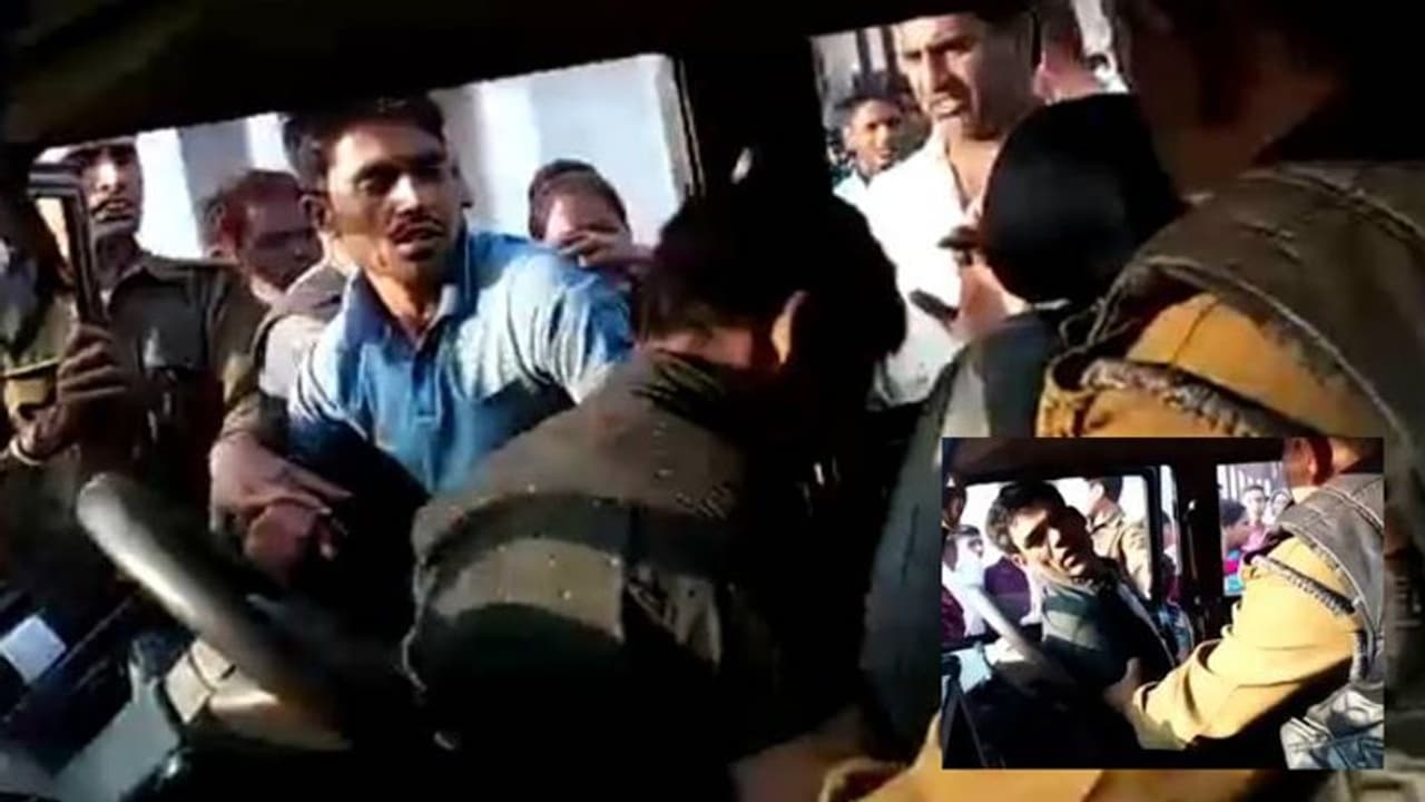 യുവാവിനെ ആക്രമിച്ച ആറ് പേരില് ഒരാളെ പൊലീസ് അറസ്റ്റ് ചെയ്തു. ബാക്കി അഞ്ച് പേര്ക്കായി തെരച്ചില് തുടരുകയാണ്. രാജേന്ദ്ര എന്ന ആളെയാണ് സംഘം ആക്രമിച്ചത്. രാജേന്ദ്ര മദ്യപിച്ച് വഴക്കുണ്ടാക്കുന്നുവെന്ന് തിങ്കളാഴ്ച വൈകീട്ടാണ് ഹാത്ചോയ ഗ്രാമത്തില്നിന്ന് പൊലീസിന് സന്ദേശം ലഭിച്ചത്. ഉടന് സ്ഥലത്തെത്തിയ പൊലീസ് സംഘം ഇയാളെ കസ്റ്റഡിയിലെടുത്തു. എന്നാല് വാഹനത്തില് കയറ്റിയ ഇയാളെ ആള്ക്കൂട്ടം വാഹനത്തിനുള്ളിലേക്ക് കൈ നീട്ടി മര്ദ്ദിക്കുകയും ഡോര് തുറന്ന് പുറത്തേക്ക് വലിച്ചിടുകയും ചെയ്യുന്നത് വീഡിയോയില് വ്യക്തമാണ്.