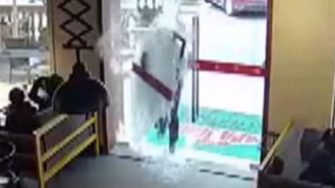 ഡെലിവറി ബോയി വളരെ വേഗത്തിലായിരുന്നതിനാല് ചില്ല് തകര്ന്ന് തരിപ്പണമായി. ഹെല്മറ്റ് ധരിച്ചതിനാല് തലയ്ക്ക് പരിക്ക് പറ്റിയിട്ടില്ല. എന്നാല് സംഭവിച്ചതെന്തെന്ന് പോലും മനസിലാകാതെ ഹോട്ടലിന്റെ പ്രവേശന വാതിലില് ശരീരമാസകലം ചില്ലുമായി വാതിലിന്റെ പിടി കയ്യില് പിടിച്ച് ആളുക്കാരുടെ മുന്നില് ഒരു നിമിഷം ഡെലിവറി ബോയ് അന്തിച്ച് നിന്നു.