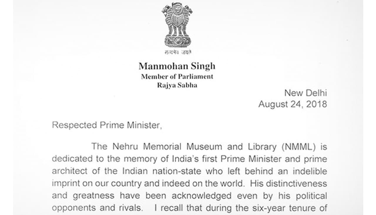 ജവഹർലാൽ നെഹ്റു കോൺഗ്രസ്സിന് മാത്രമല്ല, മുഴുവൻ രാജ്യത്തിനും വേണ്ടപ്പെട്ടവനായിരുന്നു. ആ പ്രസരിപ്പ് നിന്നാണ് ഞാൻ നിങ്ങൾക്ക് എഴുതുന്നത് എന്ന കുറിപ്പോടെ കഴിഞ്ഞയാഴ്ച്ചയാണ് മന്മോഹന്സിങ് പ്രധാനമന്ത്രിക്ക് കത്ത് അയച്ചത്. ആറ് വര്ഷം ഭരണത്തിലുണ്ടായിരുന്ന അടല് ബിഹാരി വാജ്പേയി ഒരിക്കല് പോലും നെഹ്റു മ്യൂസിയത്തെയും തീന്മൂര്ത്തി ഭവനെയും ബാധിക്കുന്ന തരത്തിലുള്ള മാറ്റങ്ങള് കൊണ്ടുവരാന് ആലോചിച്ചിട്ടില്ല. എന്നാൽ അത്യന്തം ഖേദകരം എന്നു പറയട്ടെ, ഇത് തീർത്തും കേന്ദ സർക്കാരിന്റെ അജണ്ട തന്നെയാണെന്ന് മന്മോഹന്സിങ് കത്തില് ചൂണ്ടിക്കാട്ടി. നെഹ്റു മരിച്ചപ്പോള് വാജ്പേയി പാര്ലമെന്റില് നടത്തിയ പ്രസംഗത്തില് അദ്ദേഹത്തെ പ്രശംസിച്ച് സംസാരിച്ചതും കത്തില് ചേര്ത്തിട്ടുണ്ട്. തീന് മൂര്ത്തി ഭവനും നെഹ്റു മ്യൂസിയവും എല്ലാ പ്രധാനമന്ത്രിമാരുടെയും സ്മാരകമായി മാറ്റുന്നതിനുള്ള സര്ക്കാര് തീരുമാനം വിവാദമായ പശ്ചാത്തലത്തിലാണ് കത്ത്.