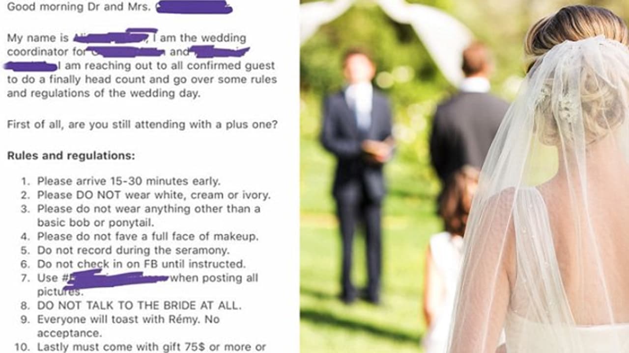 വധുവിന്റെയും കൂട്ടരുടെയും വിവാഹ പ്ലാന് എന്ന് പറഞ്ഞാണ് കത്ത് തുടങ്ങുന്നത്. ചടങ്ങില് പങ്കെടുക്കാന് എത്തുന്ന അതിഥികളുടെ വസ്ത്ര ധാരണ മുതല് ഹെയര്സ്റ്റൈല് വരെ ഇതില് ഉള്പ്പെടുന്നു. സ്ത്രീകൾ മുടി പോണിടെയ്ലായോ ബോബ് സ്റ്റൈലോ ആയി മാത്രമേ കെട്ടാൻ പാടുള്ളു എന്നതാണ് ആദ്യത്തെ നിബന്ധന. ഇങ്ങനെ തുടങ്ങി ഒരു നീണ്ട ലിസ്റ്റ് തന്നെ ഉണ്ട് ഈ കത്തിൽ.