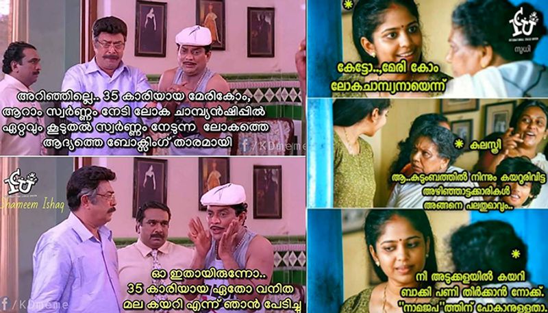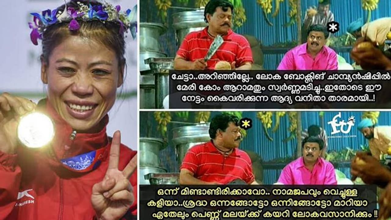 മേരി കോം ബോക്സിംഗിൽ സ്വർണ്ണം നേടിയെന്ന് പറയുന്ന മകളോട് ''നീ പോയി അടുക്കളേലെ പണിയൊതുക്ക്, നാമജപത്തിന് പോകാനുള്ളതാ'' എന്ന് അമ്മ പറയുന്നത് പോലെയുള്ള ആക്ഷേപ ഹാസ്യമാണ് എല്ലാ ട്രോളുകളിലും നിറയുന്നത്.