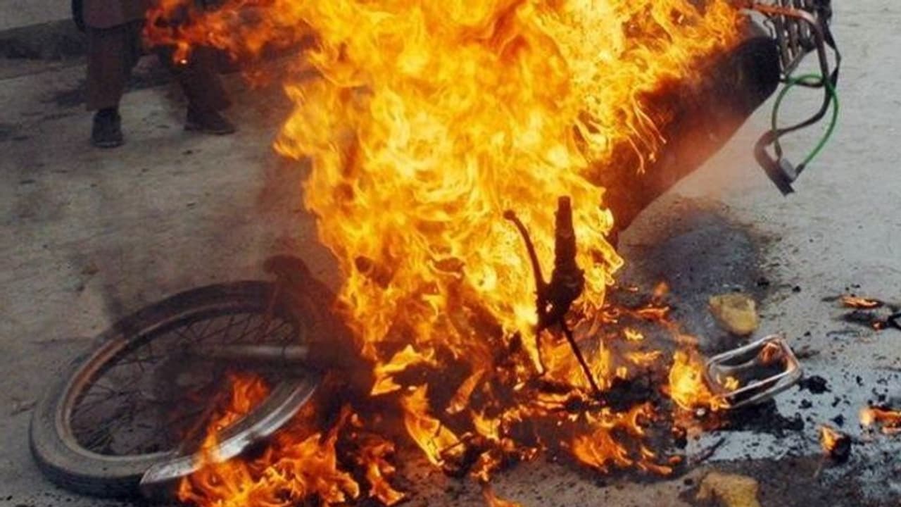 വില്പ്പനയ്ക്കായുള്ള രണ്ട് പാത്രം പാല് ബൈക്കില് കെട്ടിവച്ച് കൊണ്ടു വരികയായിരുന്നു യുവാവ്. രേഖകള് തിരക്കിയ പൊലീസുകാരനോട് ഏറെ നേരം കയര്ത്ത ശേഷമാണ് ഇയാള് ബൈക്കിന് തീയിട്ടത്. തിരക്കേറിയ റോഡില് ബൈക്കിന് തീയിട്ട ശേഷം ഇയാള് ഓടി രക്ഷപെടുകയായിരുന്നു. ഇന്നലെ രാവിലെയാണ് സംഭവം നടക്കുന്നത്. ബൈക്കില് പടര്ന്ന അഗ്നി ഉടന് നിയന്ത്രണ വിധേയമാക്കാന് സാധിച്ചത് മൂലം വന് അപകടമാണ് ഒഴിവായത്.