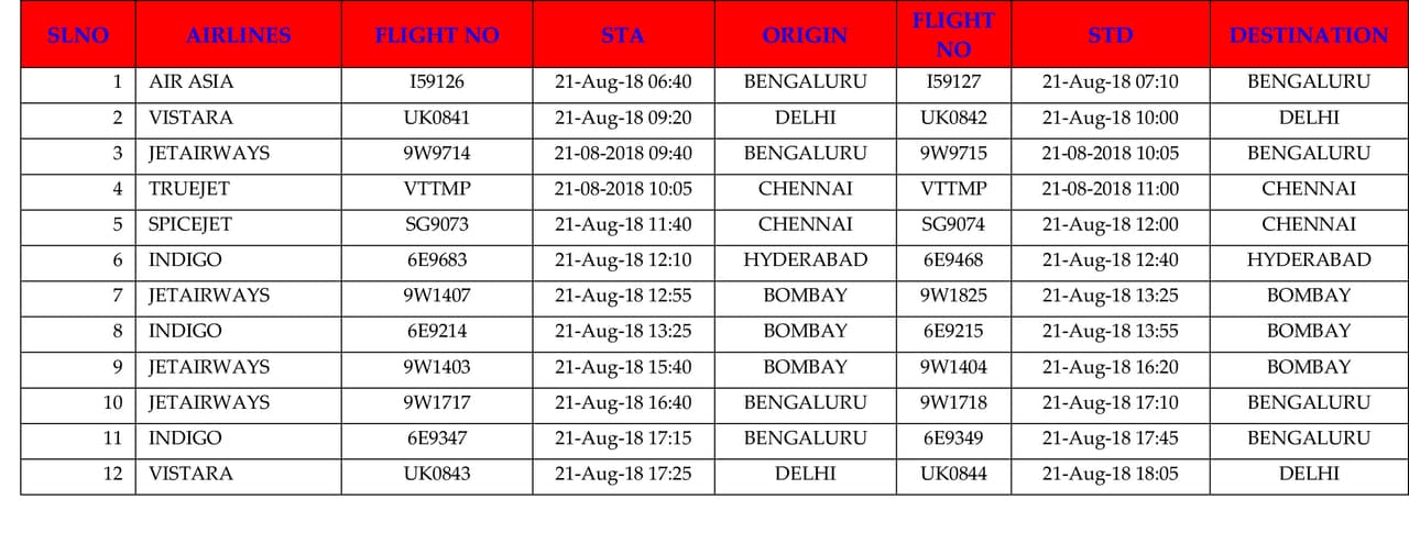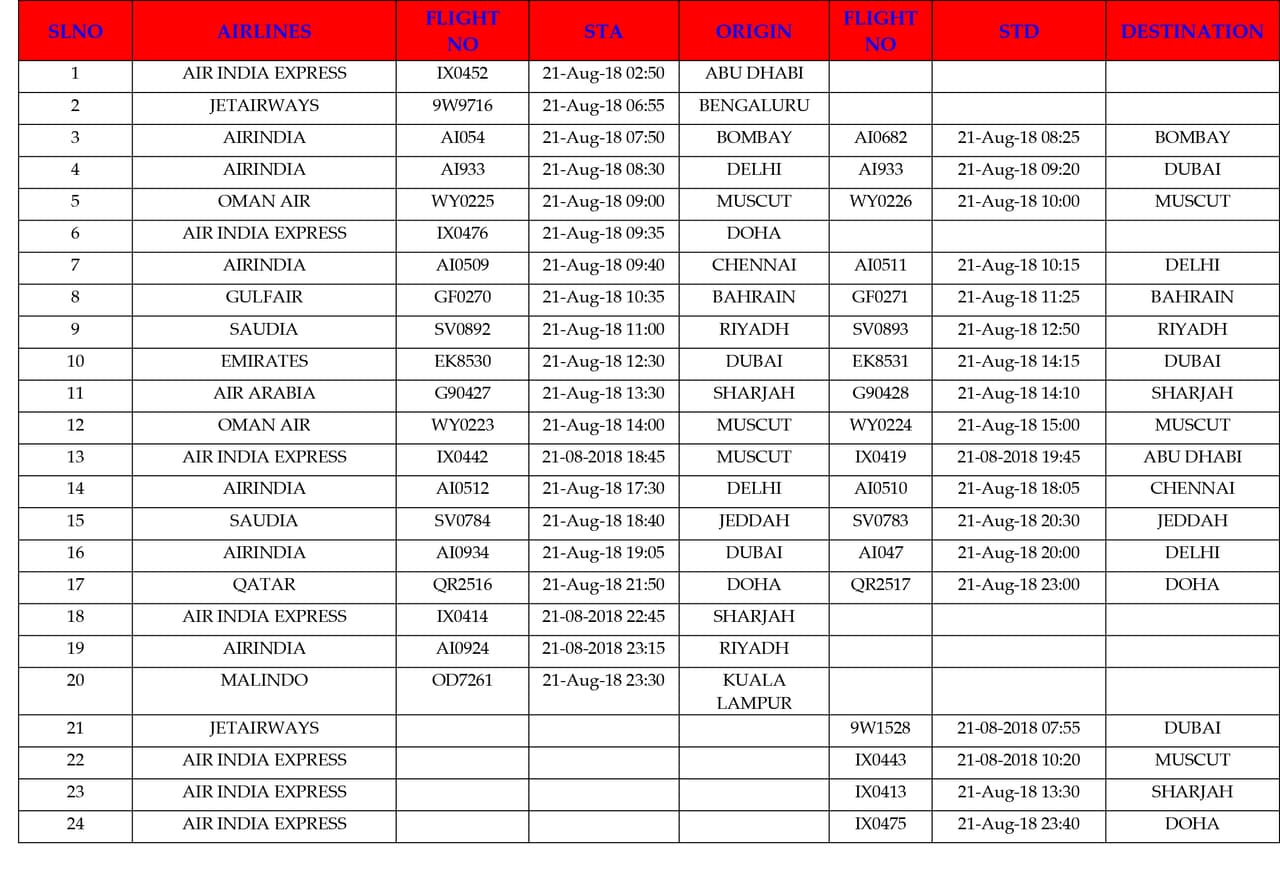 26 വരെ അടച്ചിട്ടിരിക്കുന്ന കൊച്ചി വിമാനത്താവളത്തില് എന്ന് സര്വ്വീസുകള് തുടങ്ങാനാവുമെന്ന കാര്യത്തില് വ്യക്തത വന്നിട്ടില്ല. അതുവരെ തിരുവനന്തപുരത്ത് നിന്നും കോഴിക്കോട് നിന്നും അധിക സര്വ്വീസുകള് നടത്തും.