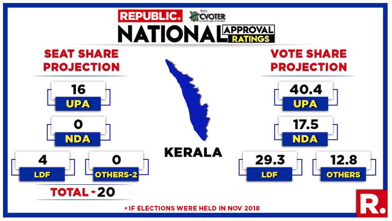 എങ്കിലും ബിജെപിക്ക് ഒരു സീറ്റ് വിജയിക്കാനുള്ള സാധ്യതകള് സര്വേ നല്കുന്നില്ല. യുഡിഎഫില് 16 സീറ്റില് 10ഉം വിജയിക്കുക കോണ്ഗ്രസാണ്. വോട്ട് ഷെയറിലുണ്ടാകുന്ന ഭീമമായ നഷ്ടം എല്ഡിഎഫിന് വലിയ തിരിച്ചടിയാണ് സമ്മാനിക്കുക. നേരത്തെ 'എബിപി- സീ വോട്ടര് സര്വേ'യും സമാനമായ ഫലങ്ങളാണ് കേരളത്തില് പ്രവചിച്ചത്.