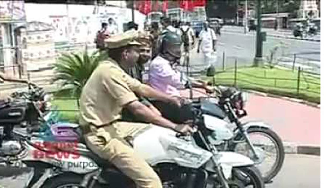 ഓടിച്ചയാളെയും കയറ്റി പോലീസ് ബൈക്കില് പോലീസ്റ്റേഷനിലേക്ക് കൊണ്ടുപോകാന് ശ്രമിക്കുന്നിതിനിടെയാണ് നാട്ടുകാരായ യുവാക്കള് രംഗത്ത് എത്തിയത്. ബൈക്ക് ഓടിക്കുന്ന പോലീസുകാരുനും ഹെല്മെറ്റ് ധരിക്കണമെന്നായിരുന്നു ഇവരുടെ വാദം. ഇതോടെ ഇരുവരും തമ്മില് വാക്കേറ്റമായി. പോലീസിനെ തടഞ്ഞ് ഹെല്മറ്റ് ധരിക്കാന് ആവശ്യപ്പെട്ടെങ്കിലും തയാറായില്ല. എന്നാല് സംഭവ സ്ഥലത്തുണ്ടായിരുന്ന എസ് ഐയും സംഘവും ബലപ്രയോഗത്തിലൂടെയാണ് പോലിസുകാരനെയും യുവാവിനെയും ബൈക്കുമായി കടത്തിവിട്ടത്.