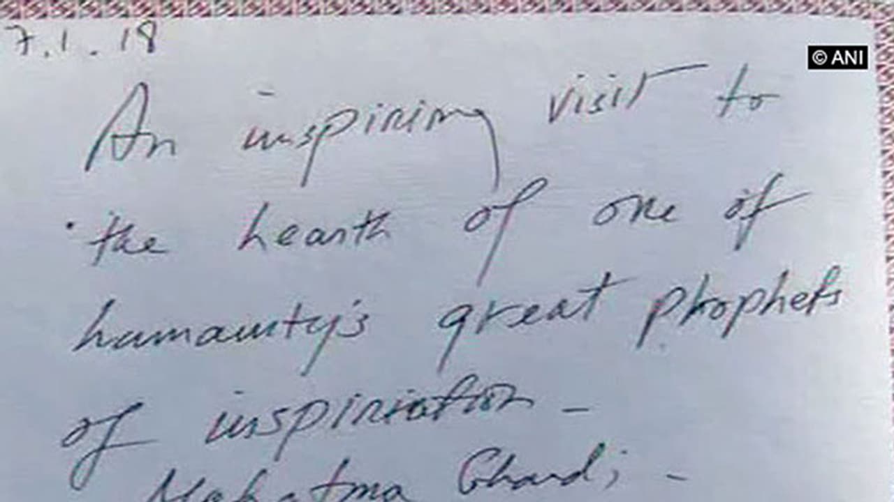 നെതന്യാഹുവും ഭാര്യയും ചേര്ന്നാണ് സബര്മതി ആശ്രമത്തിന് കുറിപ്പെഴുതിയത്. സബര്മതി സന്ദര്ശനം എന്റെ ഹൃദയത്തെ ഏറെ പ്രചോദിപ്പിക്കുന്നു... മഹാത്മാ ഗാന്ധി മനുഷ്യത്വത്തിന്റെ പ്രവാചകനാണ്... എന്നായിരുന്നു കുറിപ്പ്.