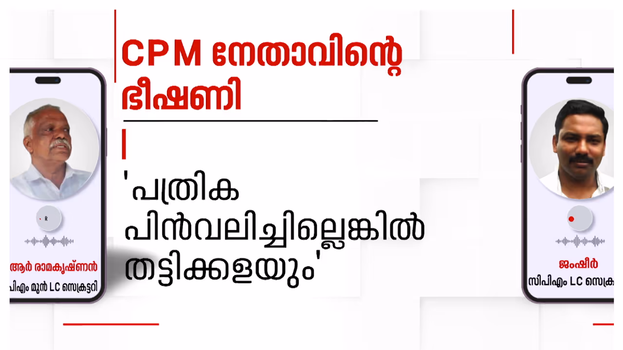 പാലക്കാട് : അട്ടപ്പാടിയിൽ ലോക്കൽ സെക്രട്ടറിയുടെ വധഭീഷണിയില് അഗളി പൊലീസ് കേസെടുക്കുന്നില്ലെന്ന് ആക്ഷേപം.ജില്ലാ പൊലീസ് മേധാവിക്ക് അഗളിയിൽ വിമതനായി മത്സരിക്കുന്ന മുൻ ഏരിയ സെക്രട്ടറി വിആർ രാമകൃഷ്ണൻ പരാതി നൽകി.അഗളി പൊലീസിൽ പരാതി നൽകിയിട്ടും കേസെടുത്തില്ലെന്ന് രാമകൃഷ്ണൻ പറഞ്ഞു.നിയമ പരിമിതിയുണ്ടെന്നും കോടതിയിൽ പോകാൻ പൊലീസ് ആവശ്യപ്പെട്ടതായും പരാതിയിൽ പറയുന്നു.ഓഡിയോ സന്ദേശം ഉൾപ്പെടെ നൽകിയിട്ടും പരാതി സ്വീകരിച്ചില്ലെന്നും രാമകൃഷ്ണൻ ആരോപിച്ചു.അഗളി പഞ്ചായത്ത് 18-ാം വാർഡിൽ സ്ഥാനാർത്ഥിത്വം പിൻവലിച്ചില്ലെങ്കിൽ കൊന്നുകളയുമെന്നായിരുന്നു സിപിഎം അഗളി ലോക്കൽ സെക്രട്ടറി എൻ ജംഷീറിൻറെ ഭീഷണി