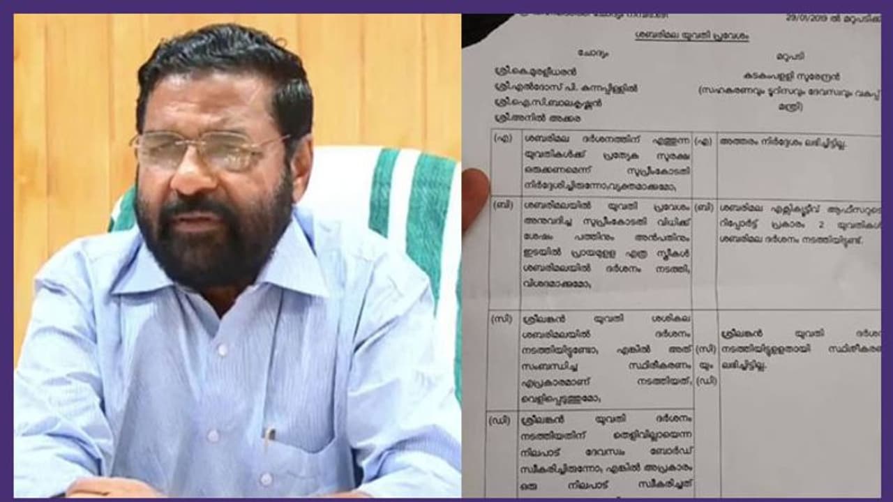 ശബരിമല എക്സിക്യുട്ടീവ് ഓഫിസറുടെ റിപ്പോര്ട്ടിന്റെ അടിസ്ഥാനത്തില് ശ്രീലങ്കന് സ്വദേശിനി ശശികല ദര്ശനം നടത്തിയതായി സ്ഥിരീകരിച്ചിട്ടില്ല . ശബരിമല ദര്ശനത്തിന് എത്തുന്ന യുവതികള്ക്ക് പ്രത്യേക സുരക്ഷ ഒരുക്കണമെന്ന നിര്ദേശം സുപ്രീം കോടതിയില് നിന്ന് ലഭിച്ചിട്ടില്ലെന്നും മന്ത്രി സഭയെ രേഖാമൂലം അറിയിച്ചു . ശബരിമലയിലെ ആചാരാനുഷ്ഠാനങ്ങള് ലംഘിക്കപ്പെട്ടാൽ നടയടച്ച് പരിഹാര ക്രിയ ചെയ്യാൻ ദേവസ്വം മാന്വൽ വ്യവസ്ഥ ചെയ്യുന്നില്ല . ദേവസ്വം ഉദ്യോഗസ്ഥര് ആണ് ശുദ്ധിക്രിയക്ക് നടപടി സ്വീകരിക്കേണ്ടത് . ശബരിമല തന്ത്രി ദേവസ്വം ജീവനക്കാരൻ അല്ല .
