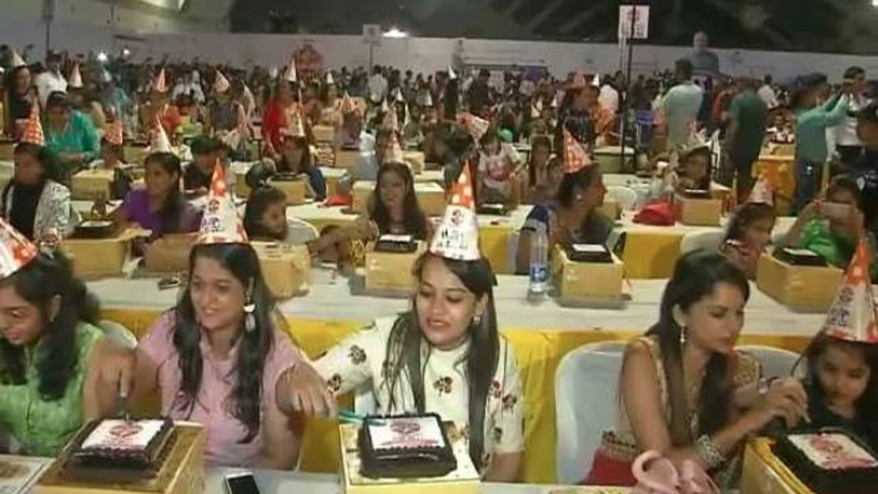 സൂറത്തിലെ സര്സാന എക്സിബിഷന് സെന്ററില് ആണ് 1200 പേര് കേക്ക് മുറിച്ച് ആഘോഷിച്ചത്. പരിപാടിയില് രാജ്യത്തിന്റെ വിവിധ ഭാഗത്തുനിന്നുള്ളവരാണ് പങ്കെടുത്തത്. ഇവരെ ഇരുപത് സംഘങ്ങളാക്കി തിരിച്ചായിരുന്നു ആഘോഷം. ജന്മദിന തൊപ്പികളും ഗാനങ്ങളും ഇതിന്റെ ഭാഗമായി ഒരുക്കിയിരിന്നു. അതുല്യ ശക്തി ദിവസം എന്ന് പേരിടാടണ് സെപ്തംബര് 17ലെ പിറന്നാളുകള് ആഘോഷിച്ചത്.